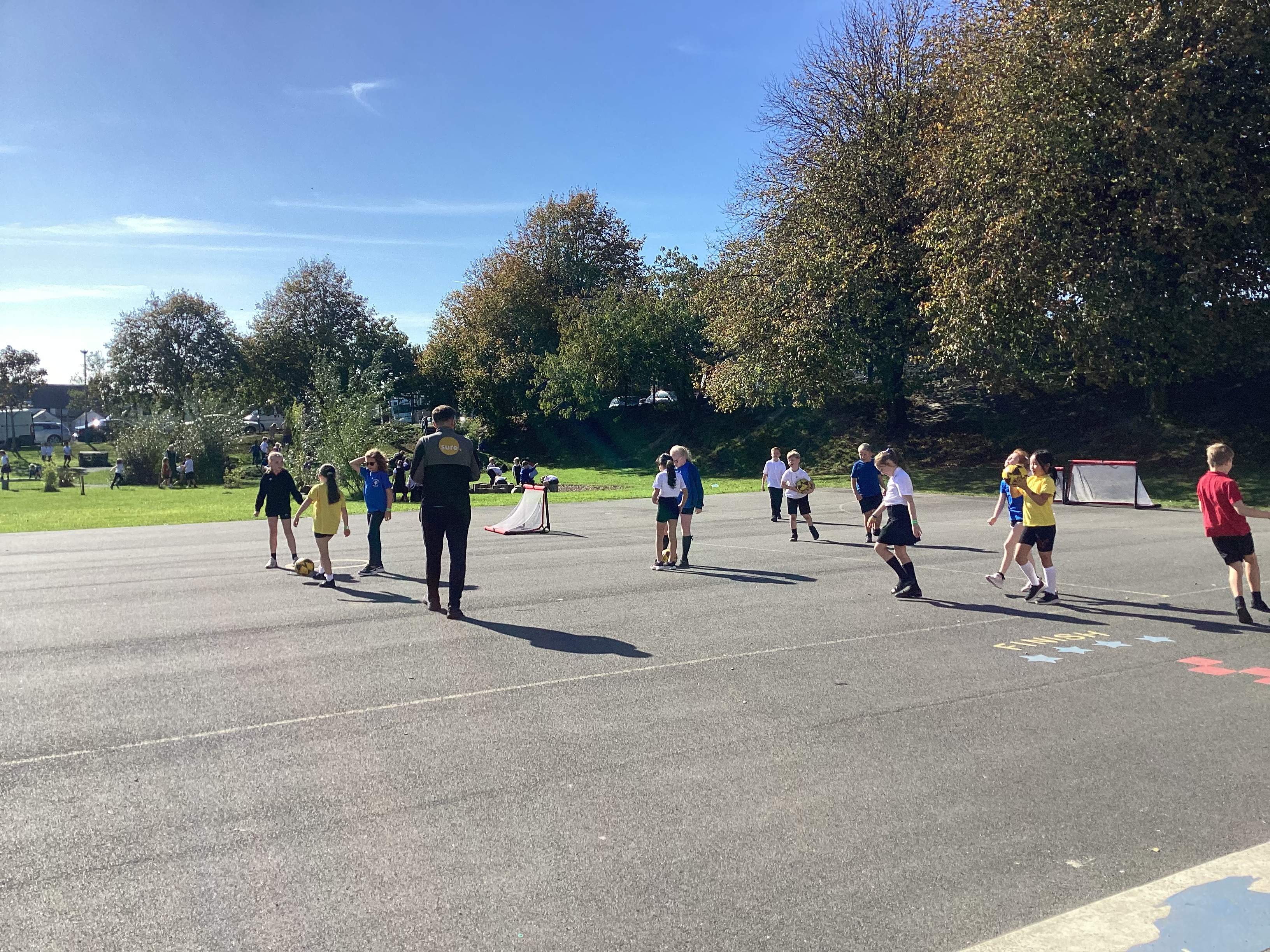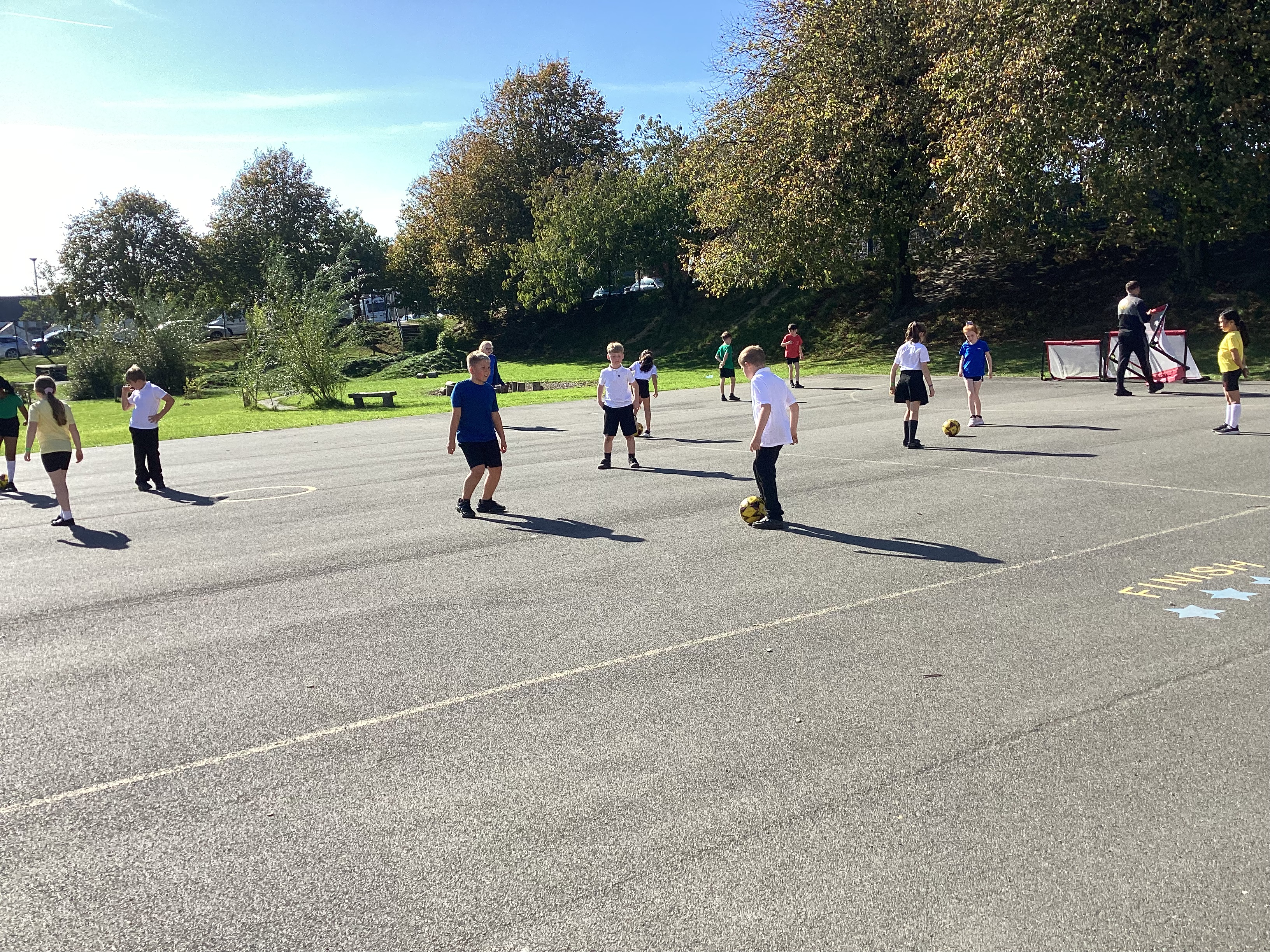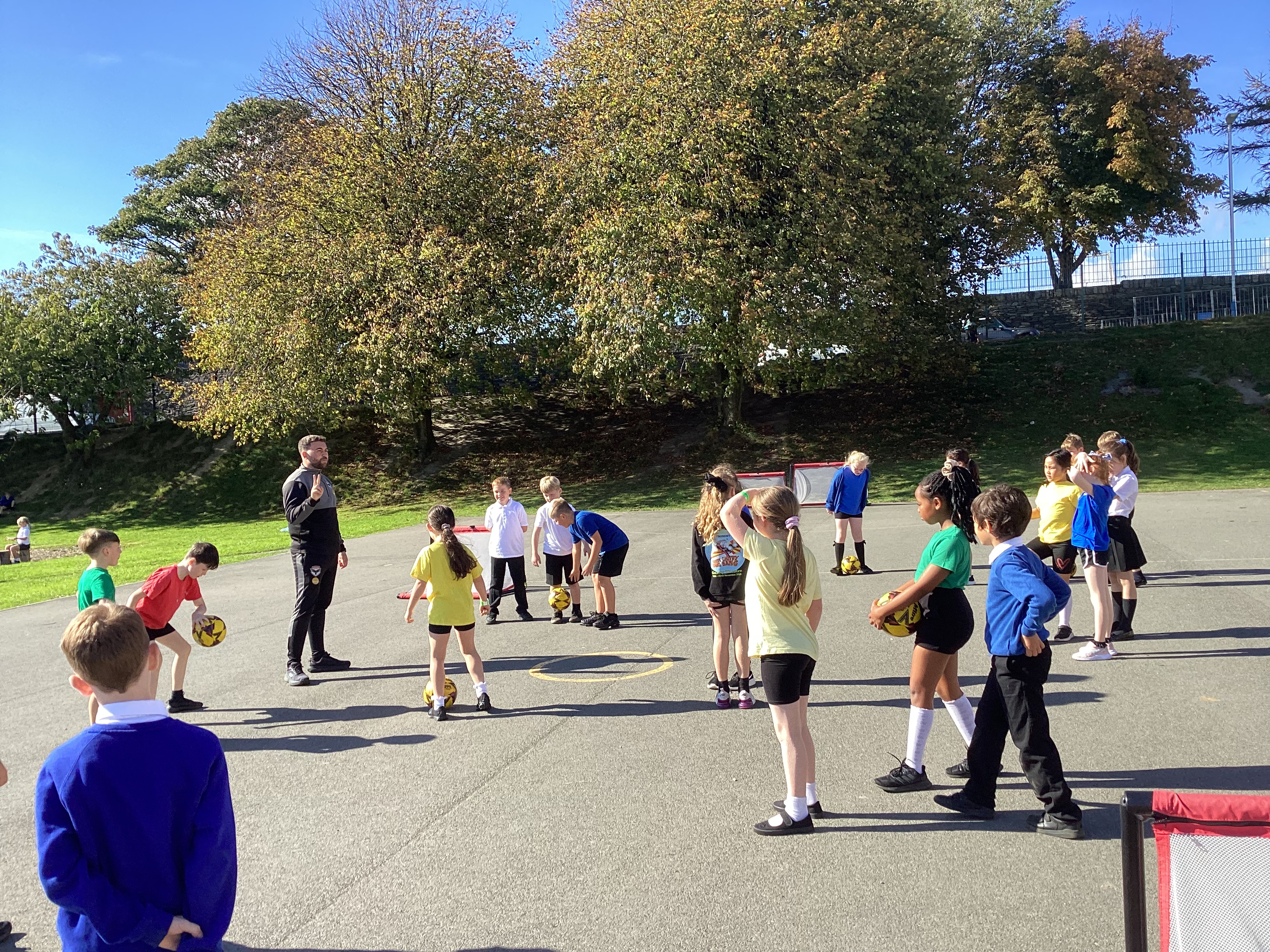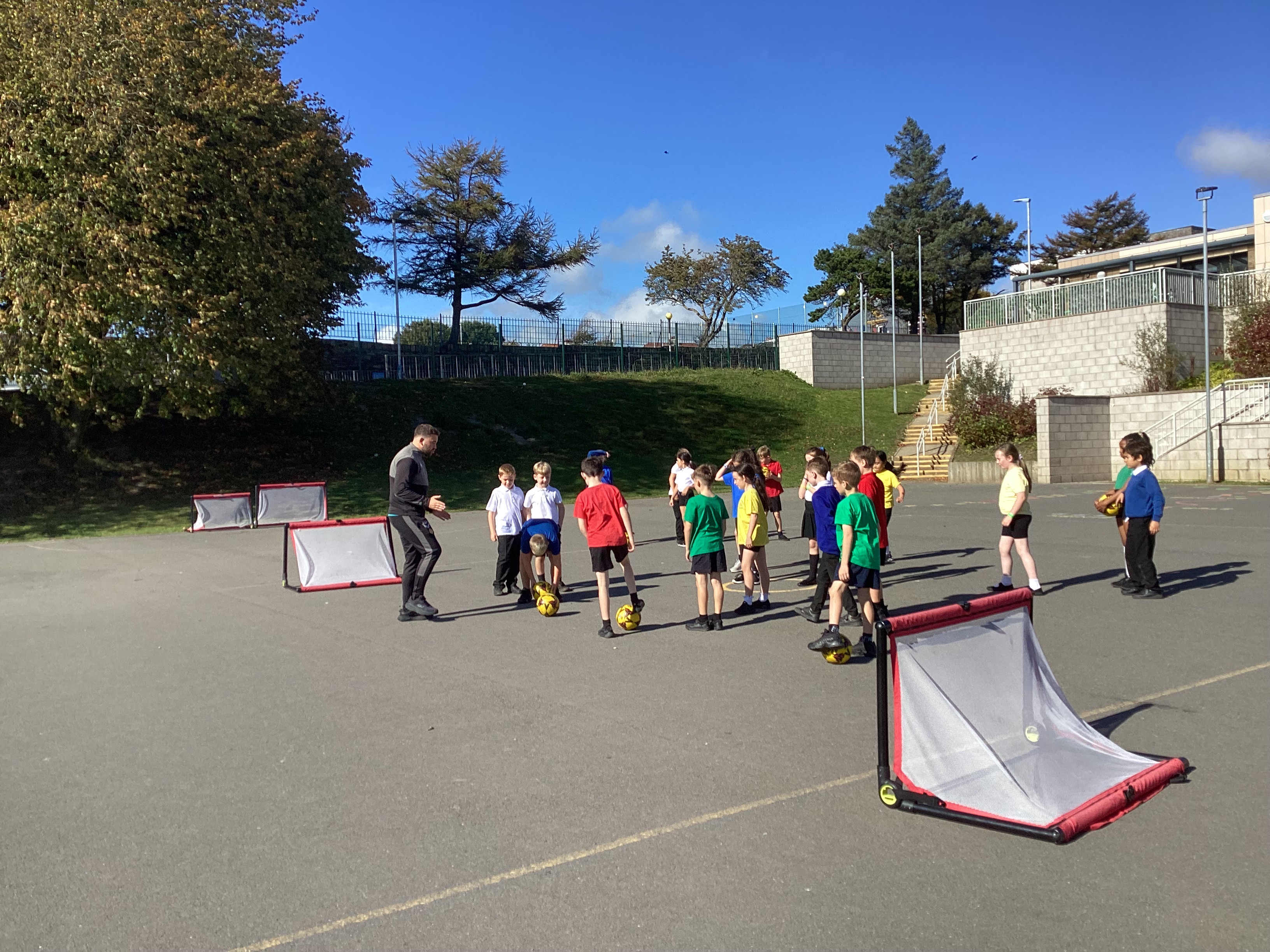 Today we were lucky enough to have a member of the FC Isle of Man team come and coach us for an hour. We worked on our team work skills, passing and kicking and strategising.