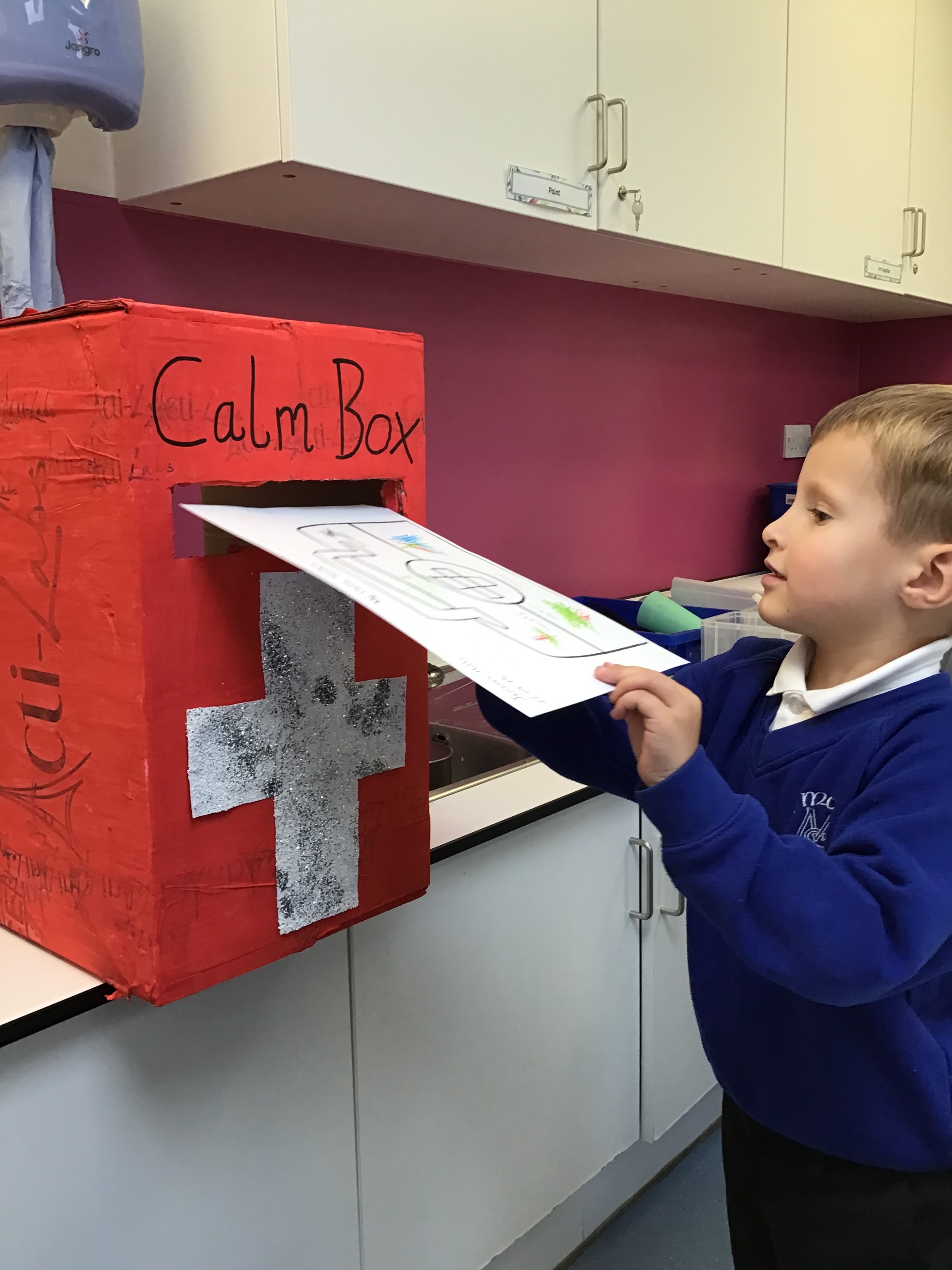 We started by thinking about what helps us feel calm. Everyone created their own calm toolkit, filled with ideas and objects that help us relax—like soft toys, quiet spaces, and gentle music.