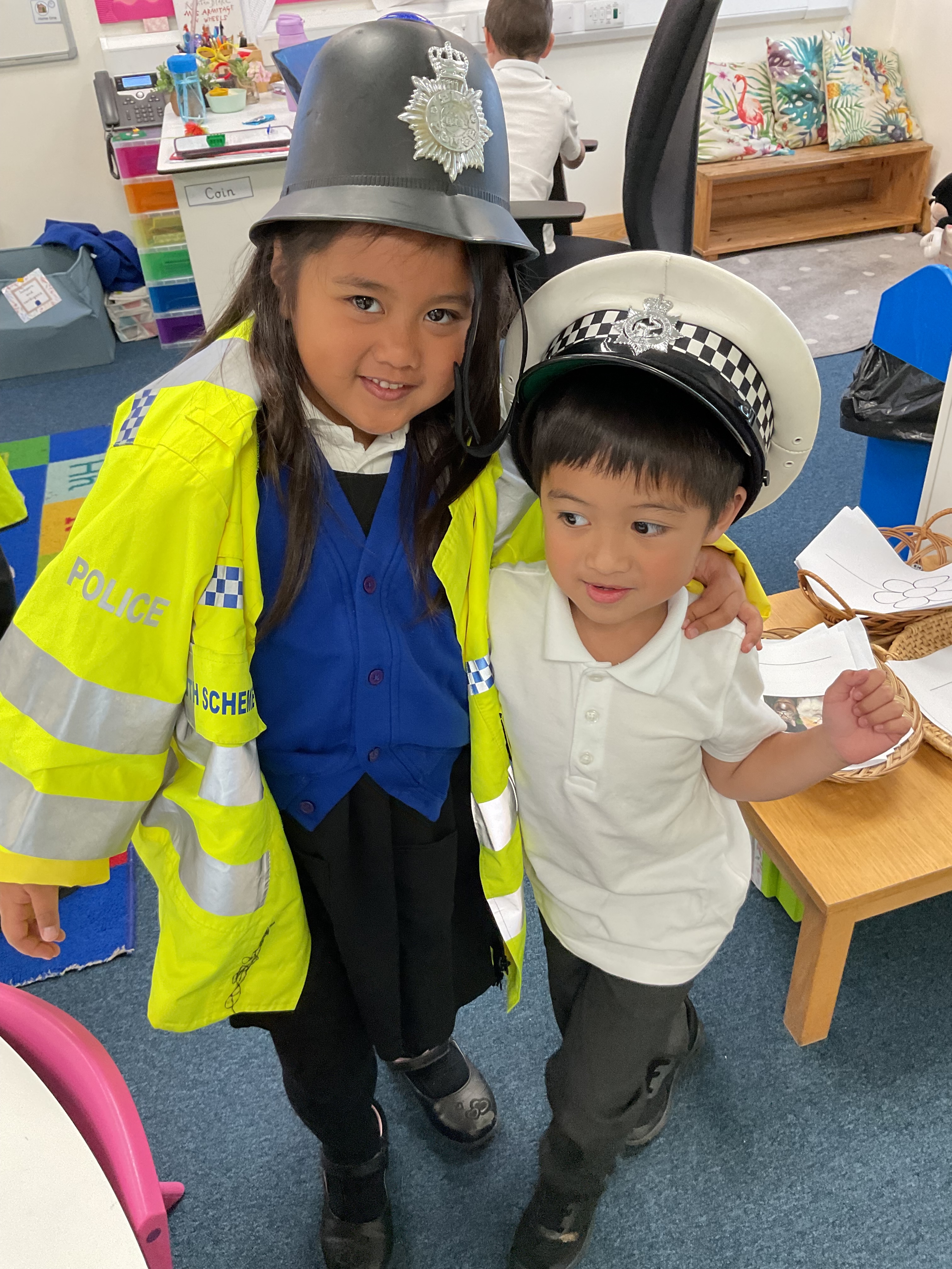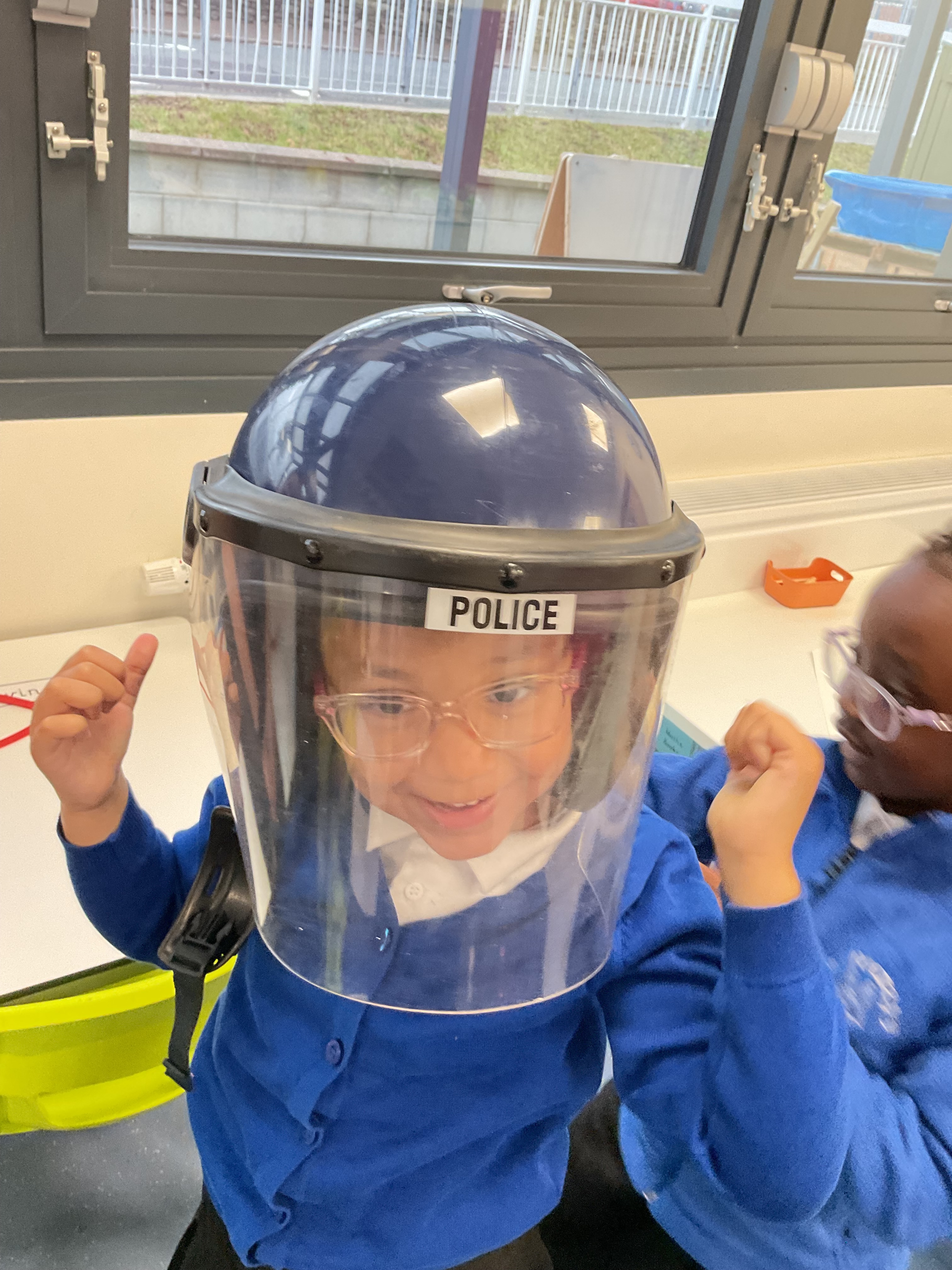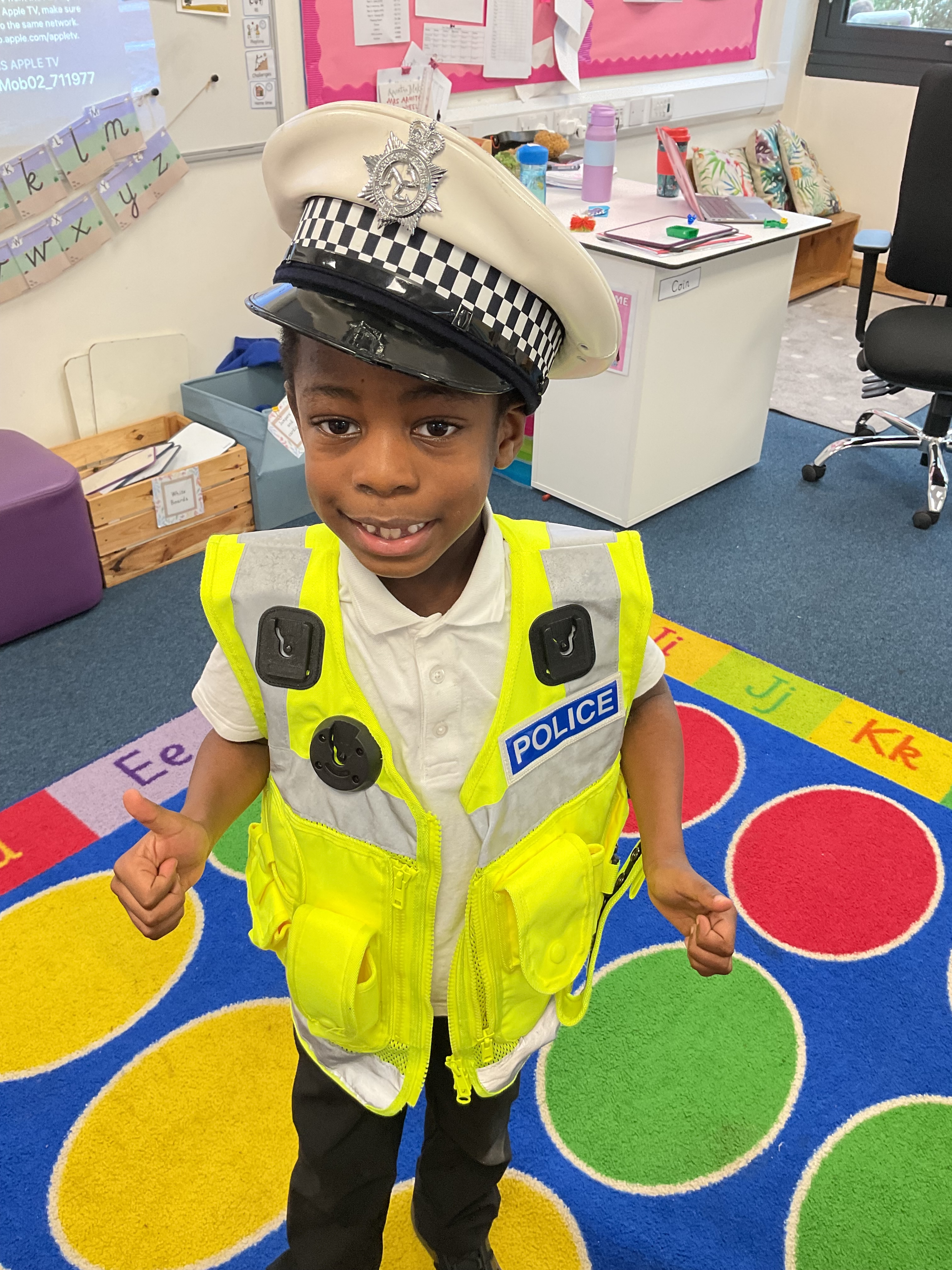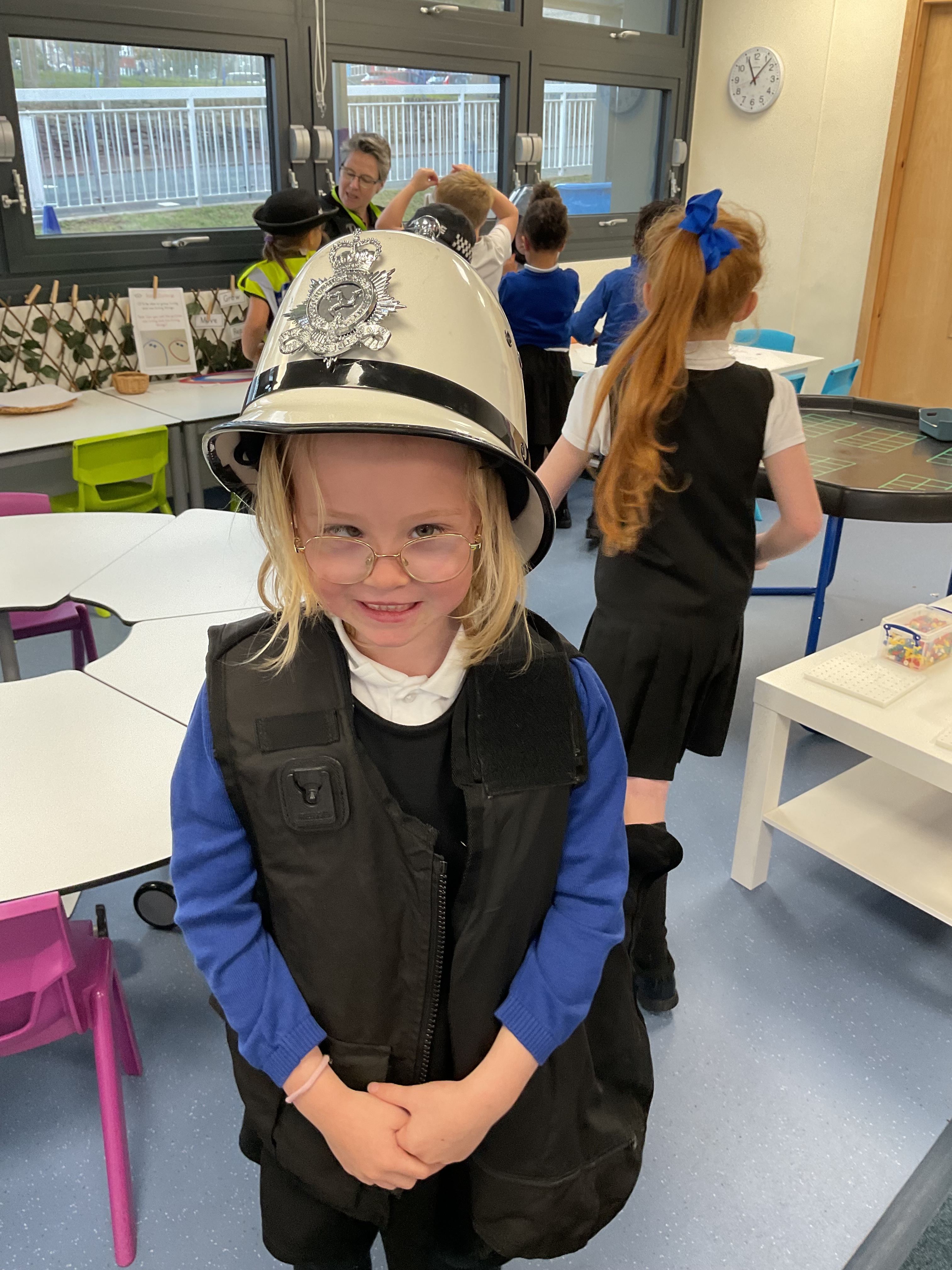 This morning, we had a special visitor—PC Lou. She spoke to us about her role as a Police Officer and explained the different ways the Police help keep our community safe. We loved trying on the uniform, sitting inside the police car and we even got to hear the sirens! PC Lou also set us some very important homework, to learn our home addresses, just in case we ever get lost and need help. The children enjoyed asking lots of thoughtful questions and left with a better understanding of how the Police keep us safe every day.