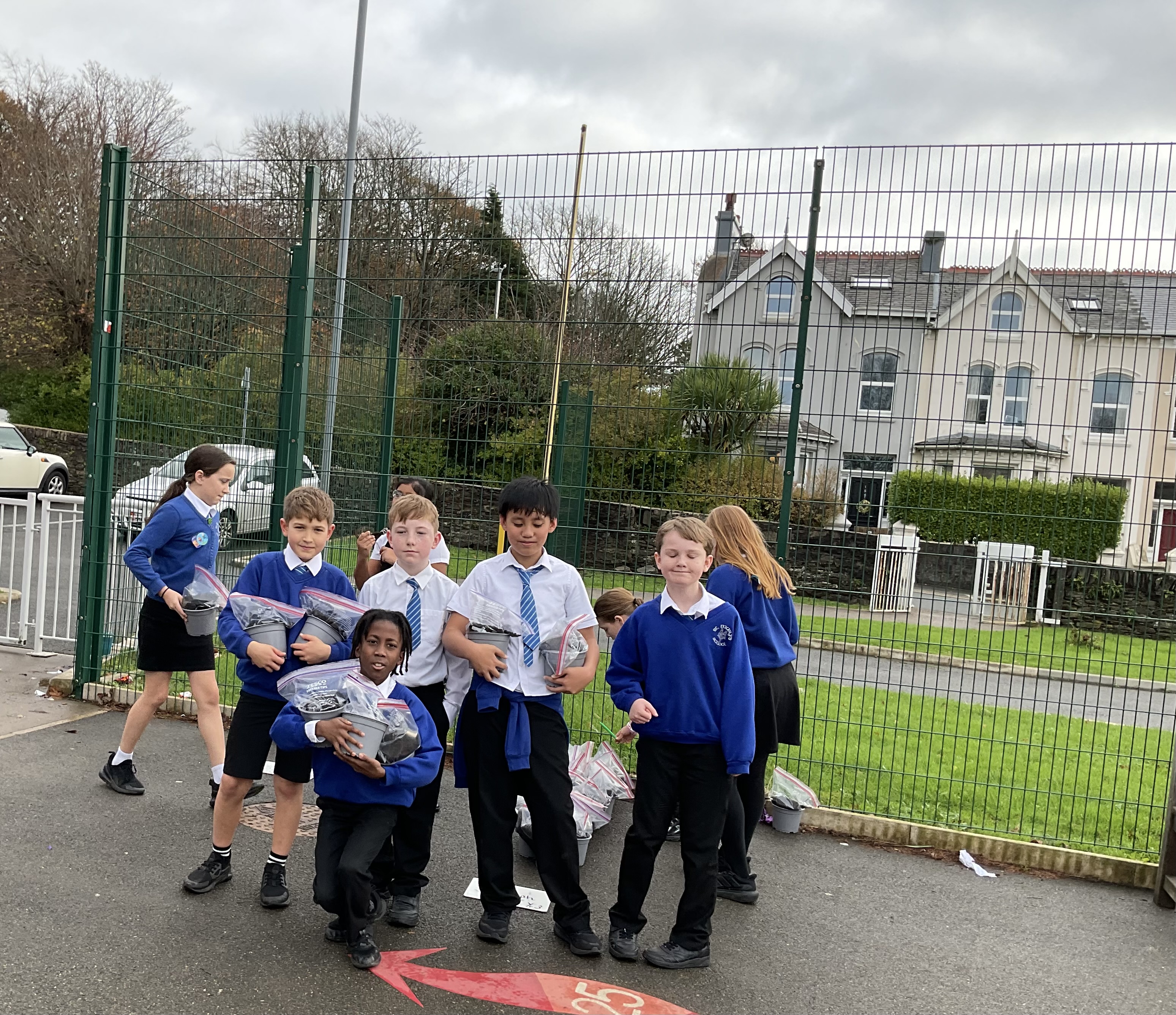 Year 6 have been busy working brilliantly as a team today to deliver 300 pots containing, a bag of soil and a daffodil bulb to every person in our school. This is so everyone has an opportunity to enter the Douglas City Council Daffodil Competition.