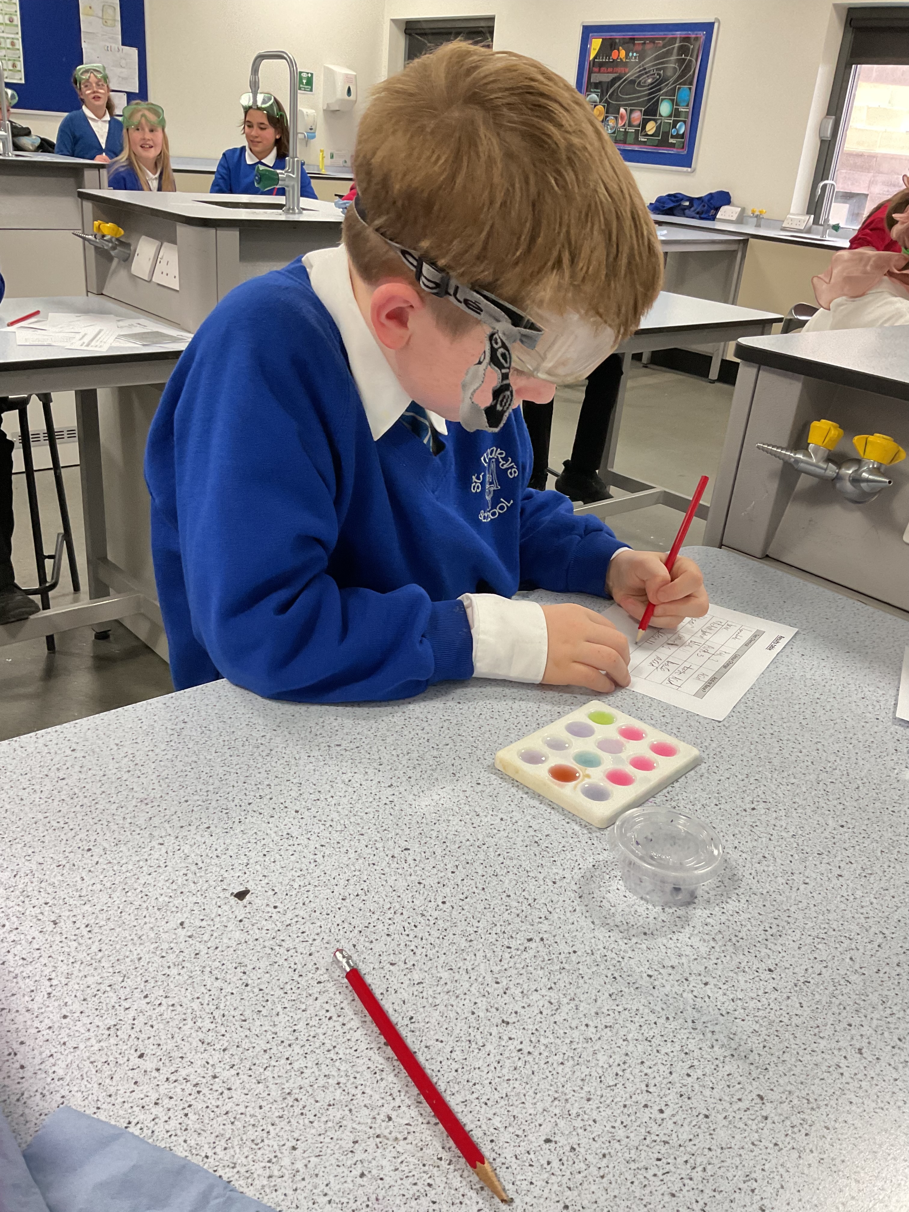 The children who are possibly attending St Ninian’s next year have spent the day at Lower School for a science focussed transition day. We had full day at Lower School where the children worked in the science labs taking part in a variety of investigations led the science staff and supported by some Year 9 pupils.
