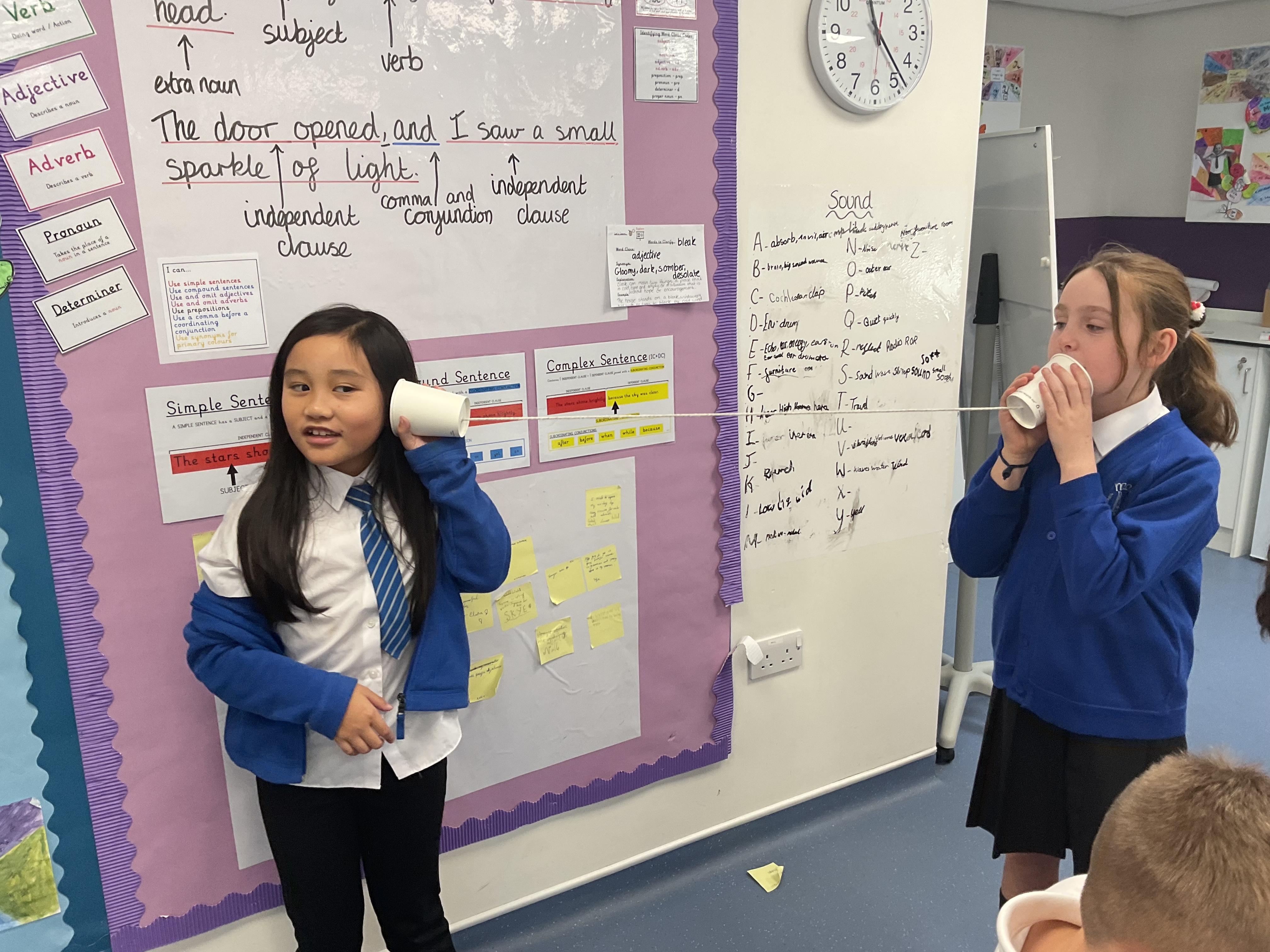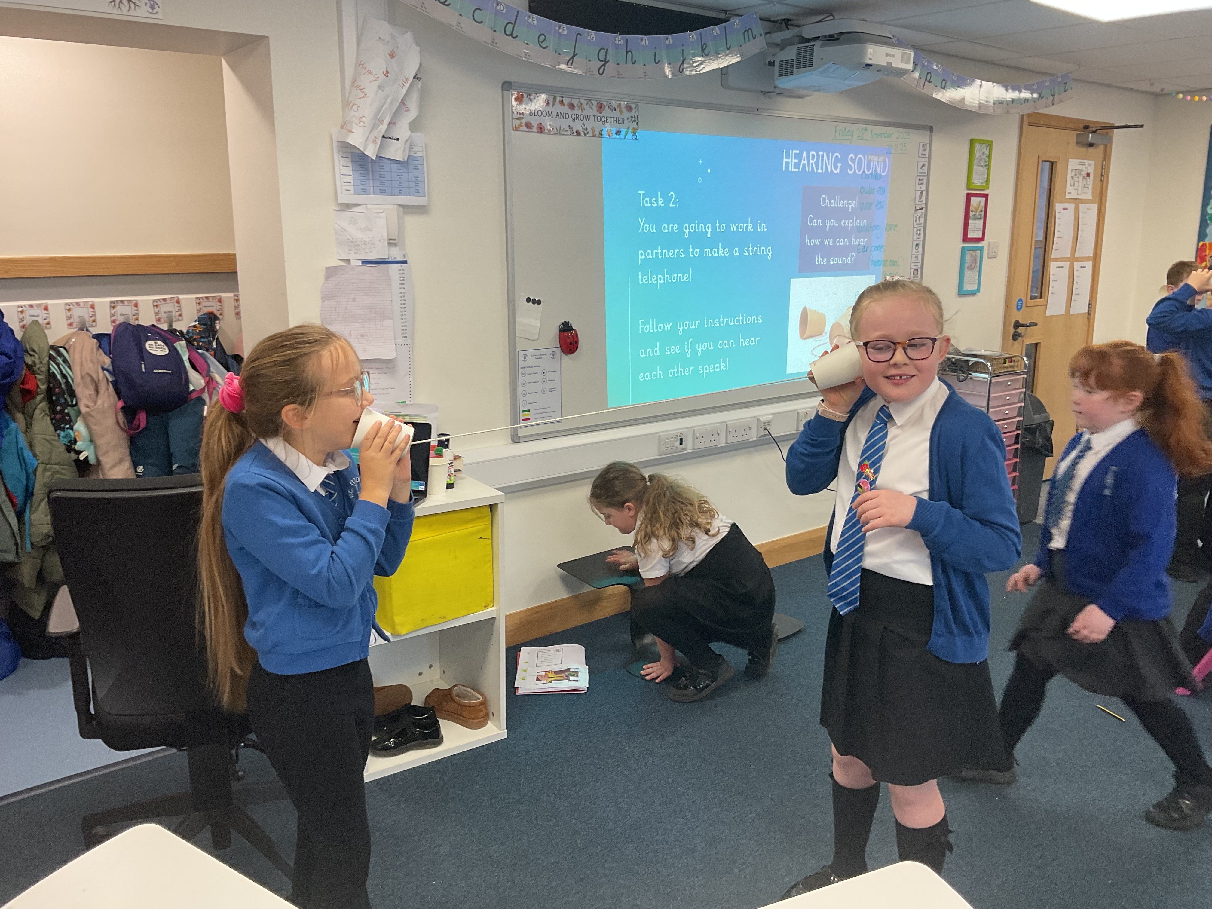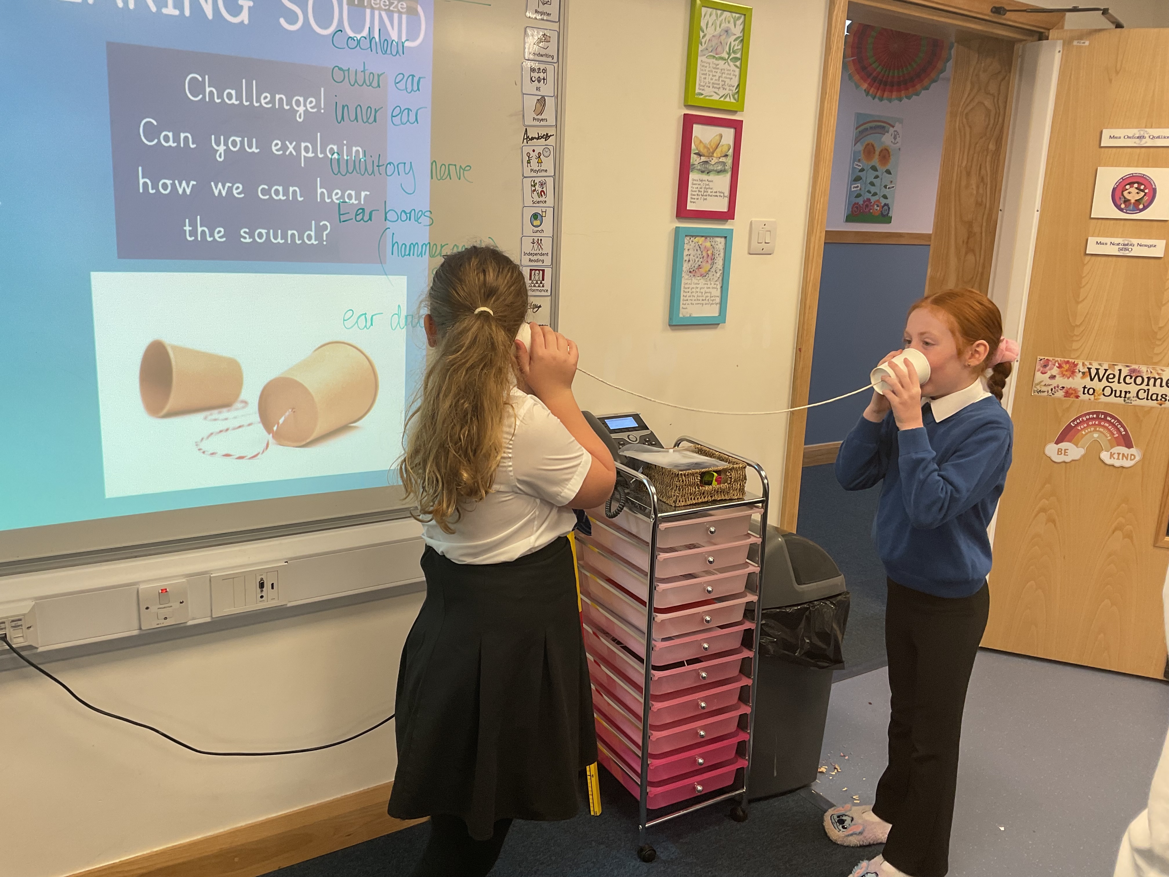 Sound Last updated yesterday We have been looking at sound over the past few weeks. Today we made cup phones to really discover how we can hear the sound.