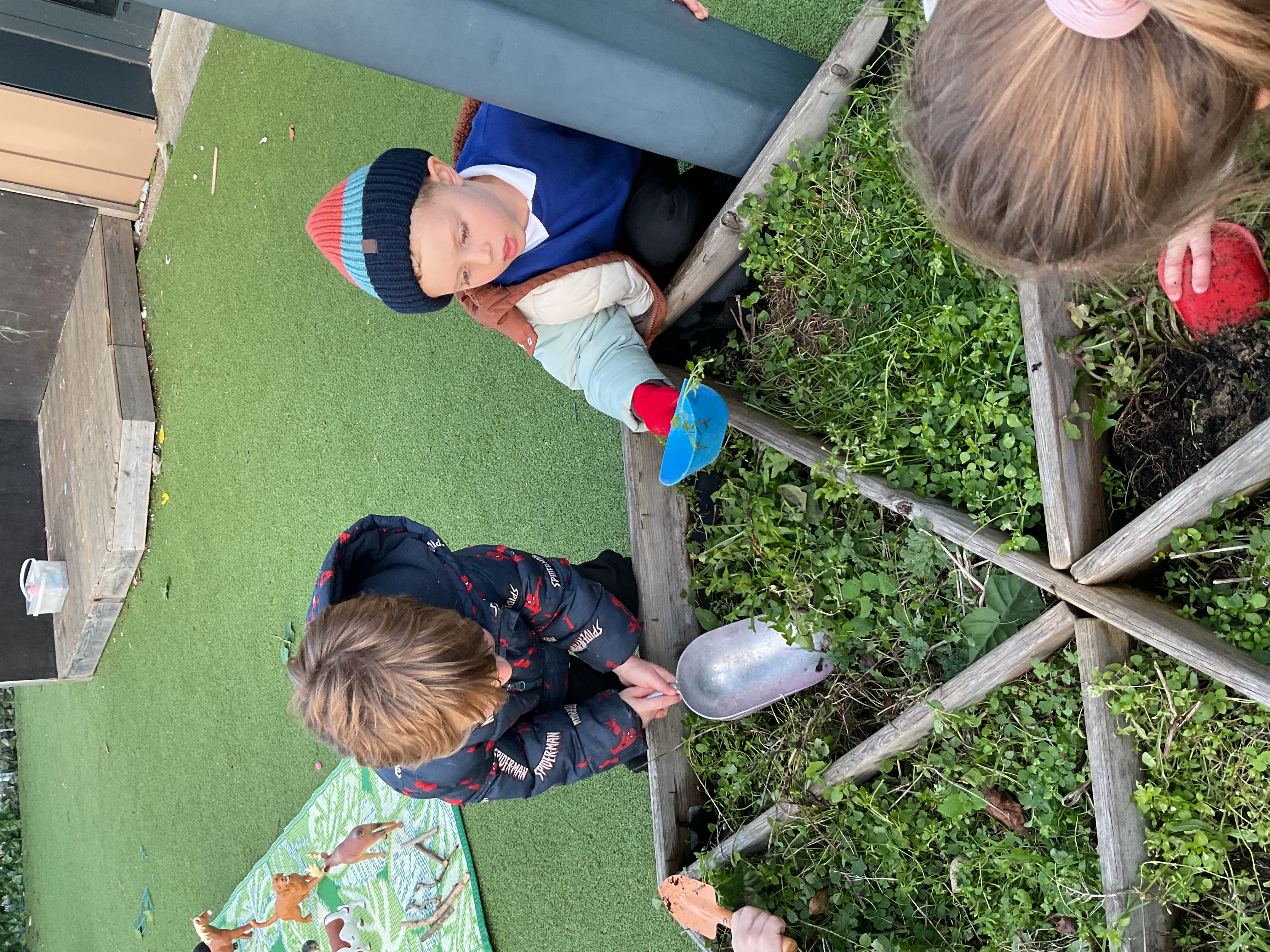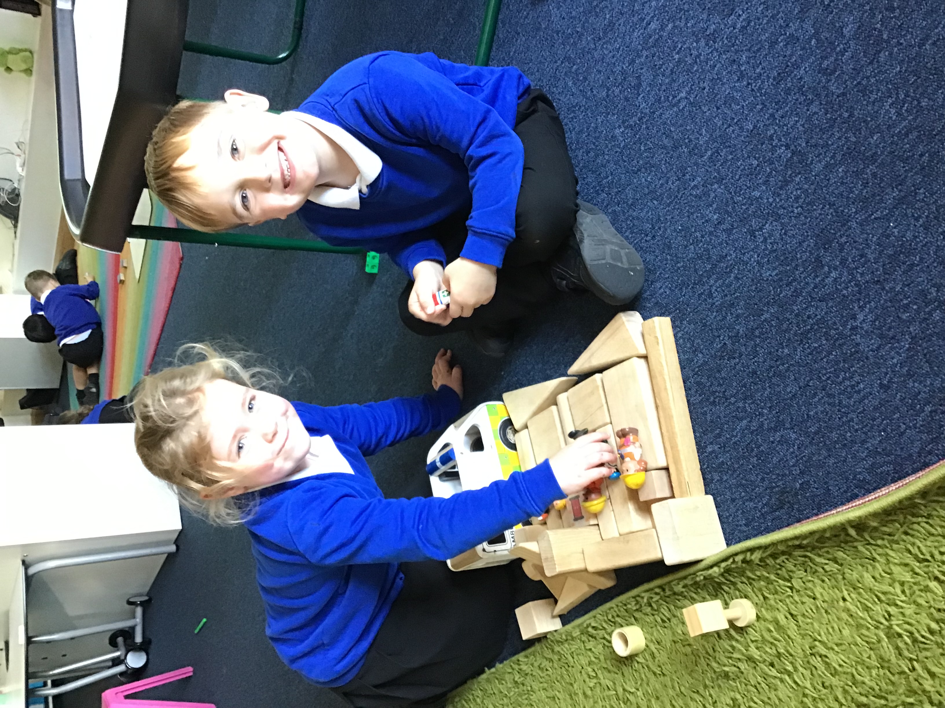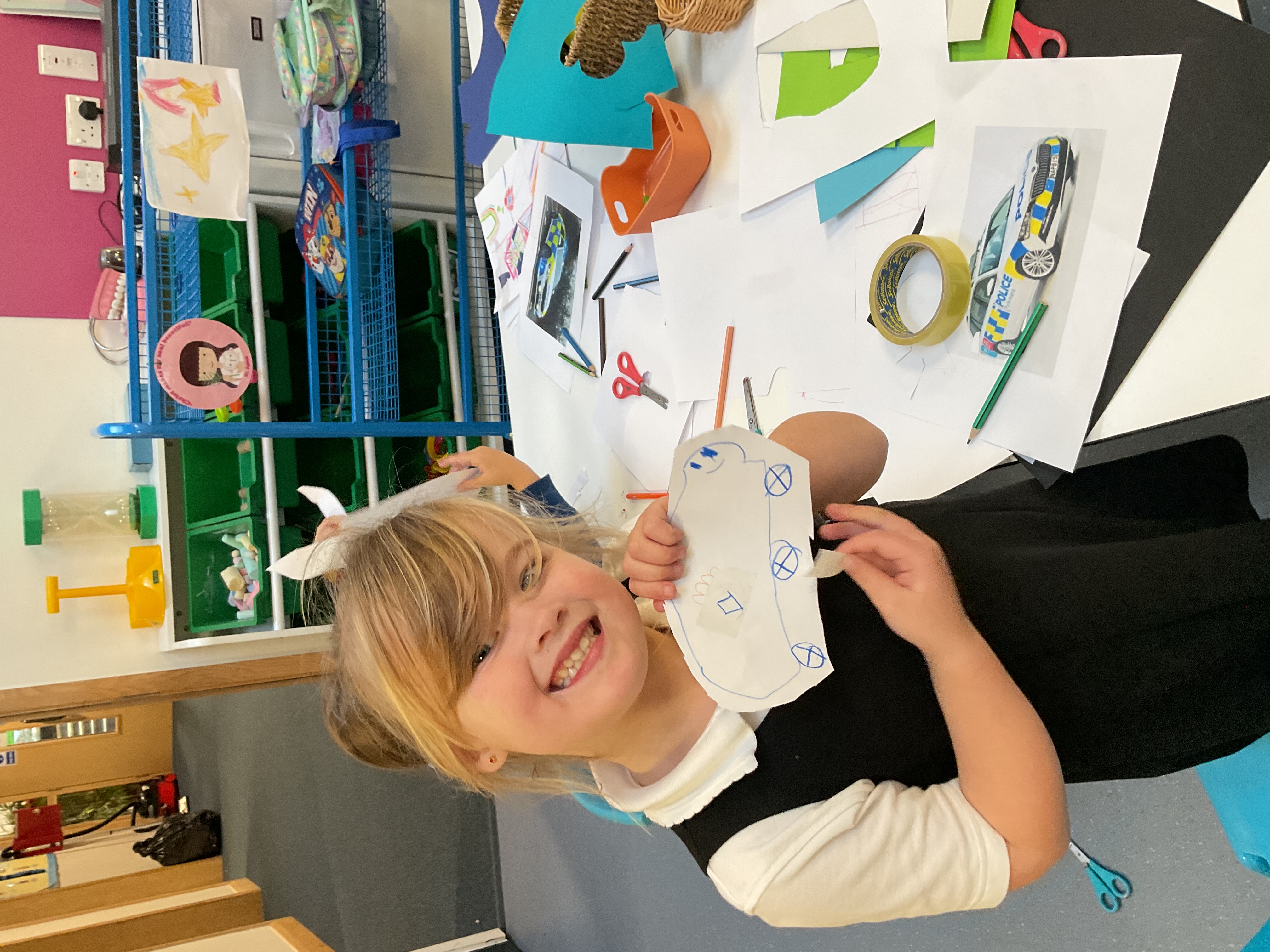 - Creative: Made police cars from paper plates and played with them in small world.