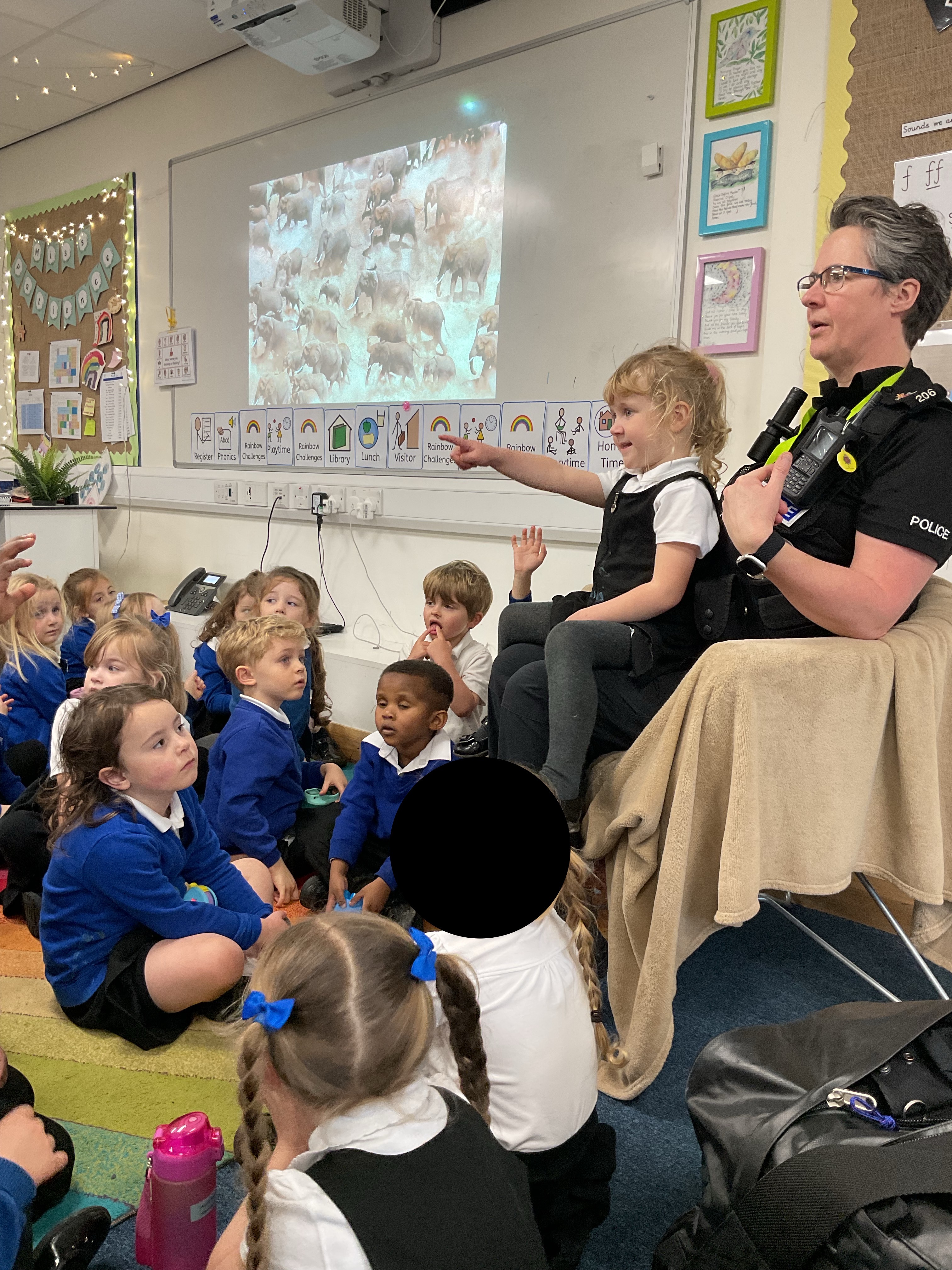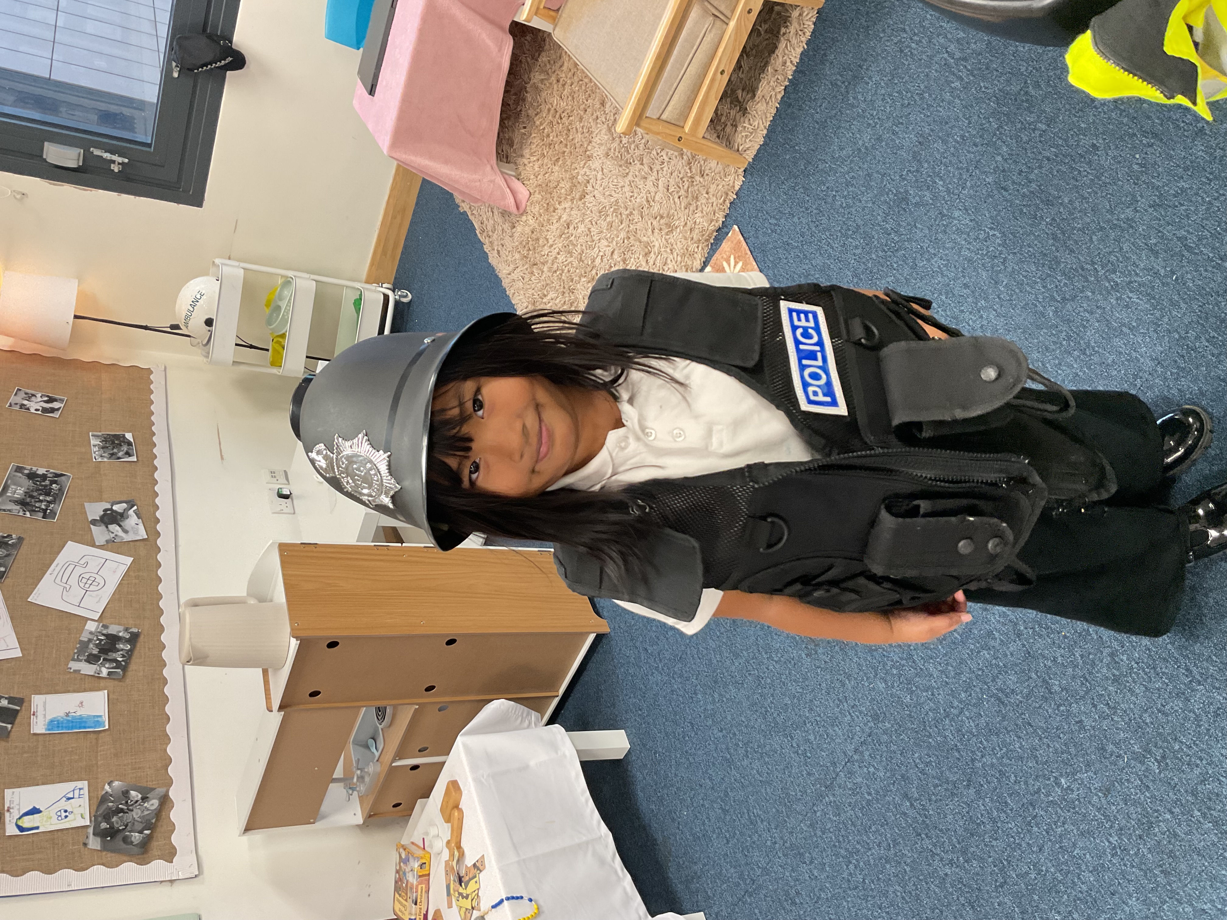 We met a police officer who told us about keeping people safe. The children asked brilliant questions and enjoyed seeing real police equipment.