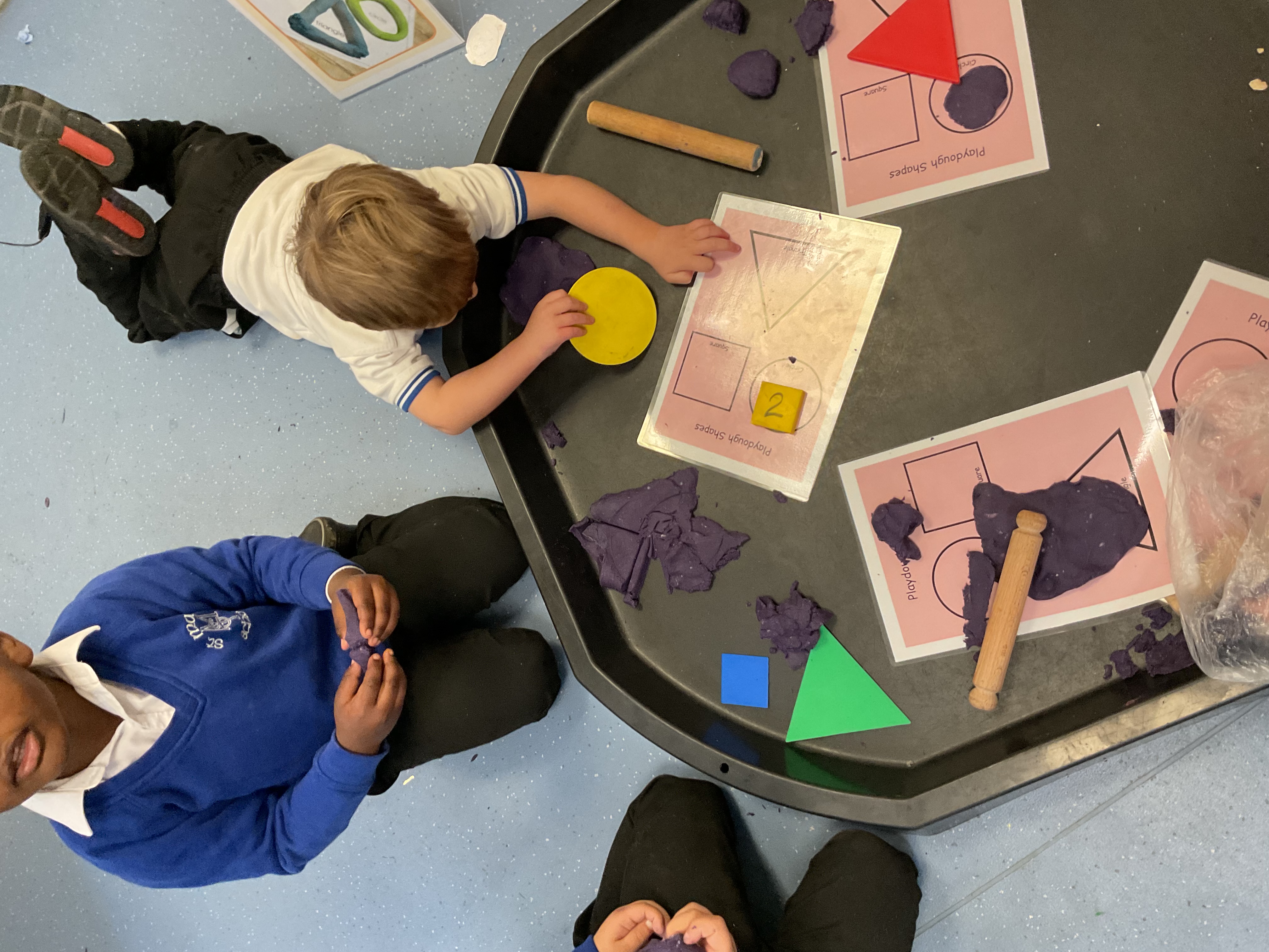 - Playdough: Made shapes like circles, squares, and triangles to strengthen fine motor skills.