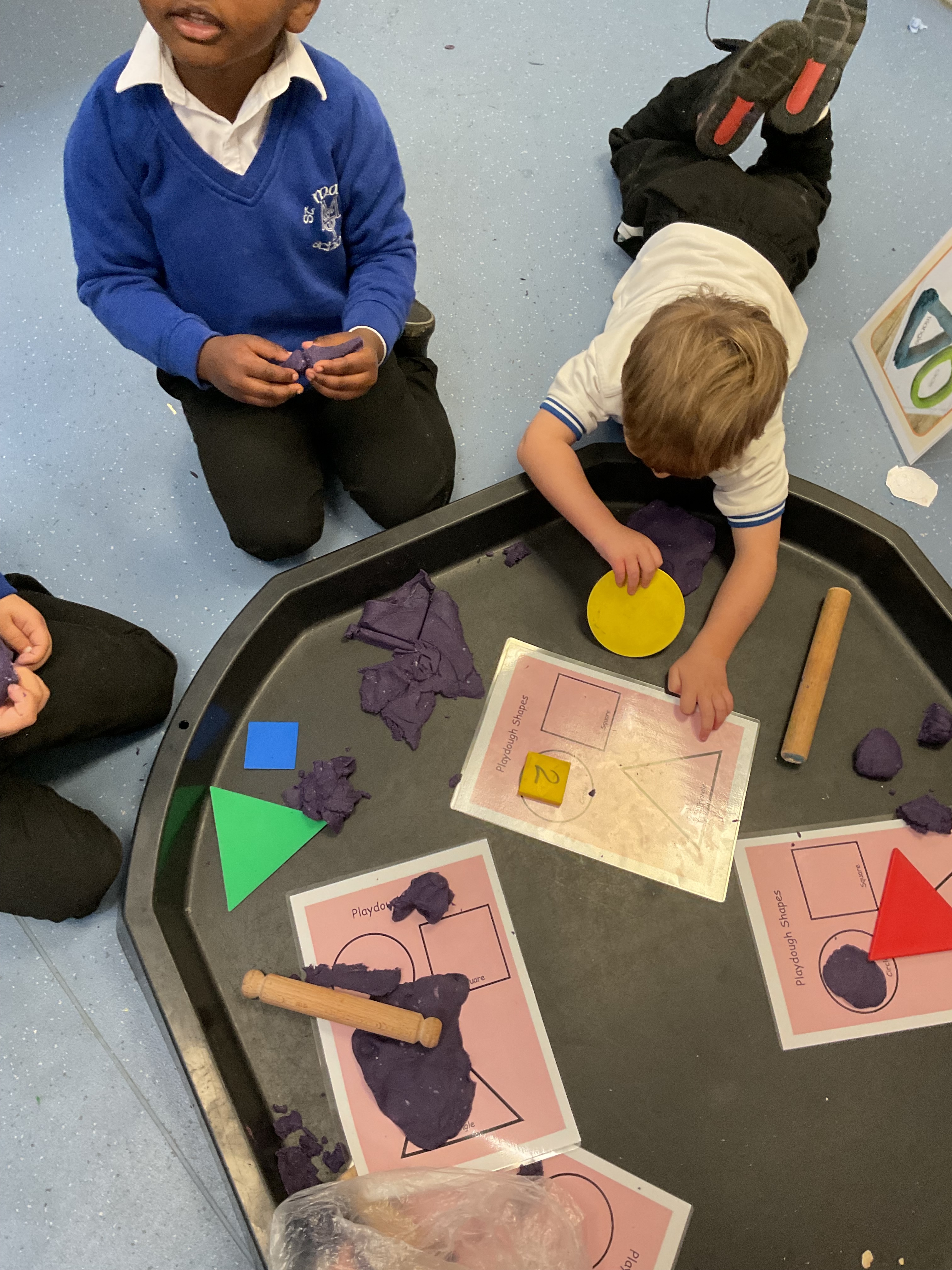 - Playdough: Made shapes like circles, squares, and triangles to strengthen fine motor skills.