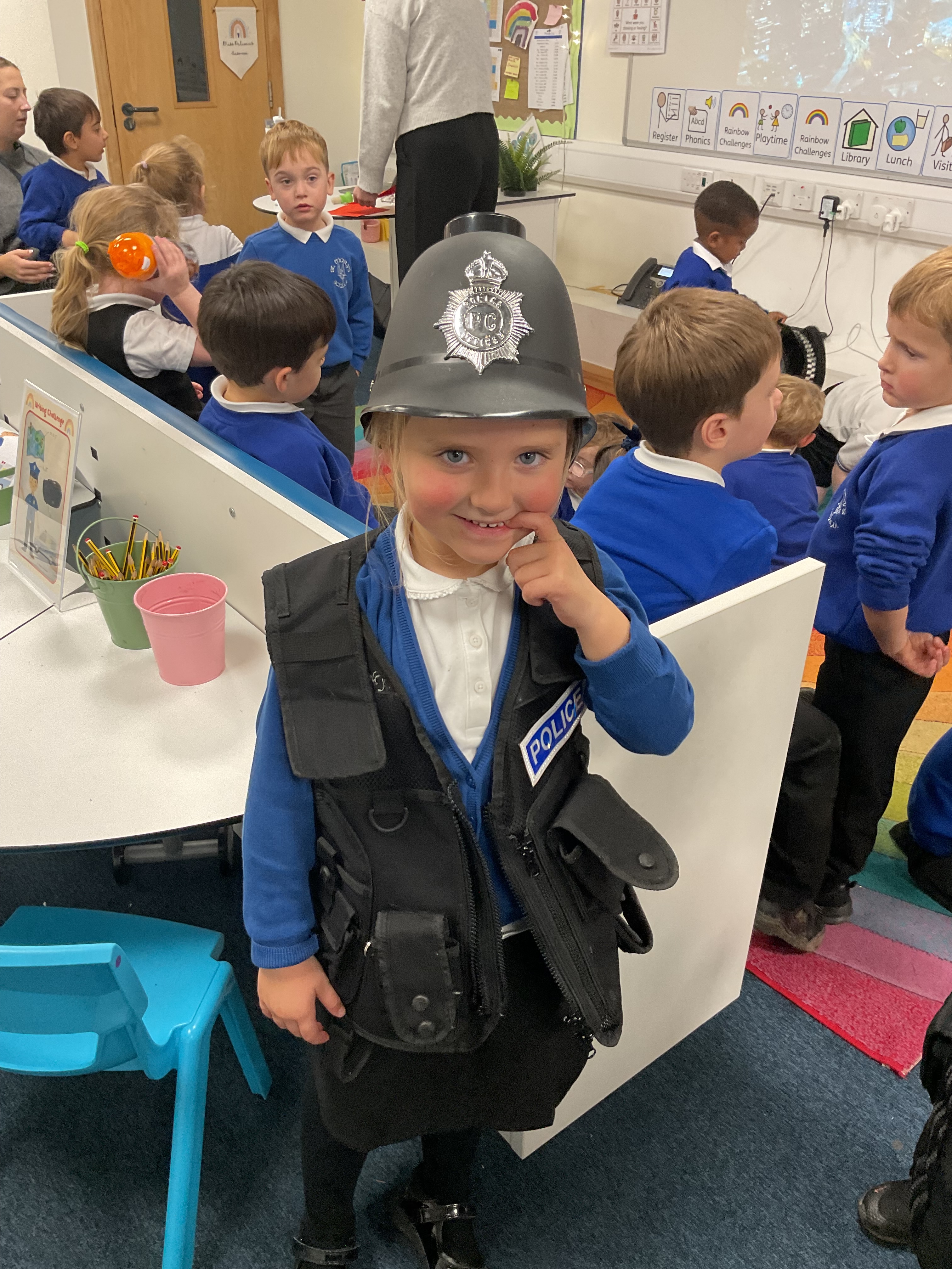 We met a police officer who told us about keeping people safe. The children asked brilliant questions and enjoyed seeing real police equipment.