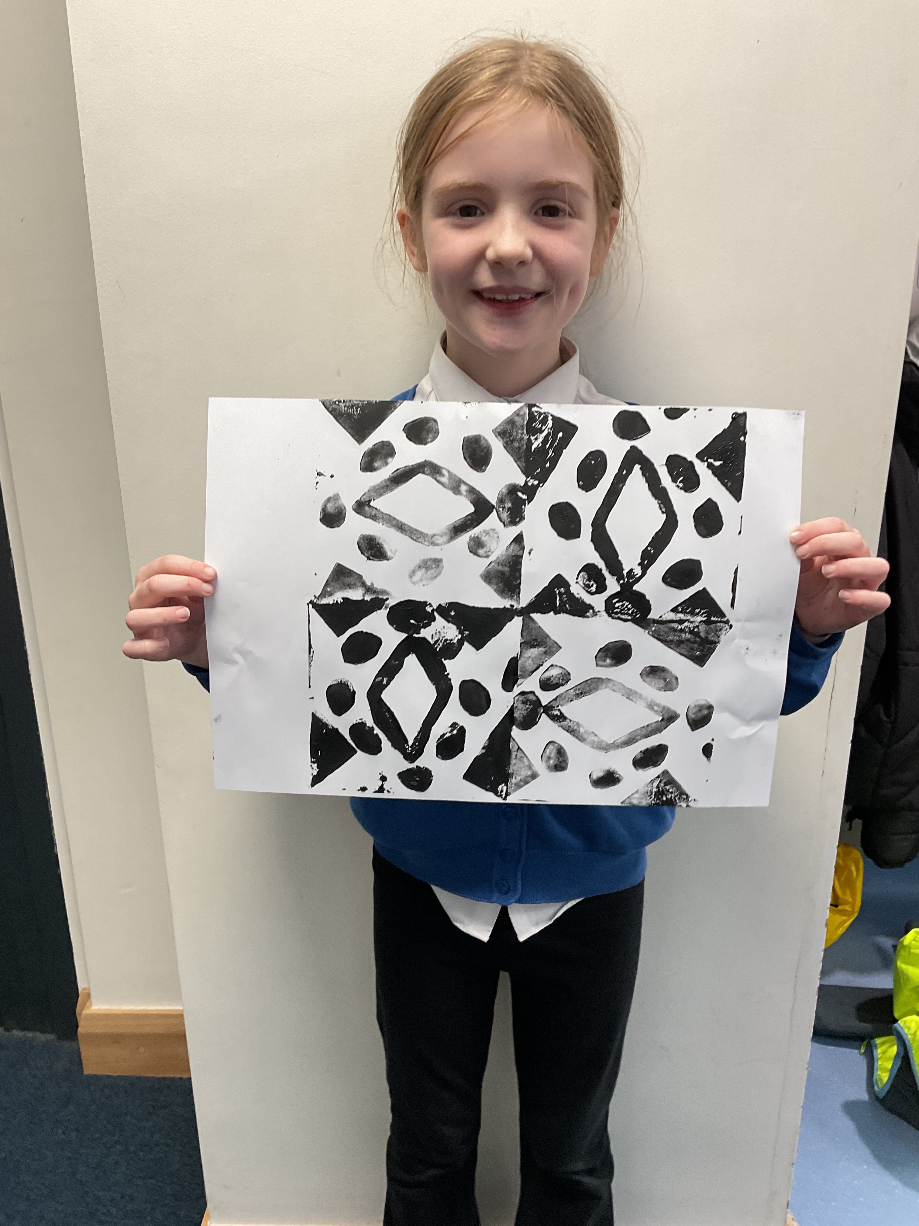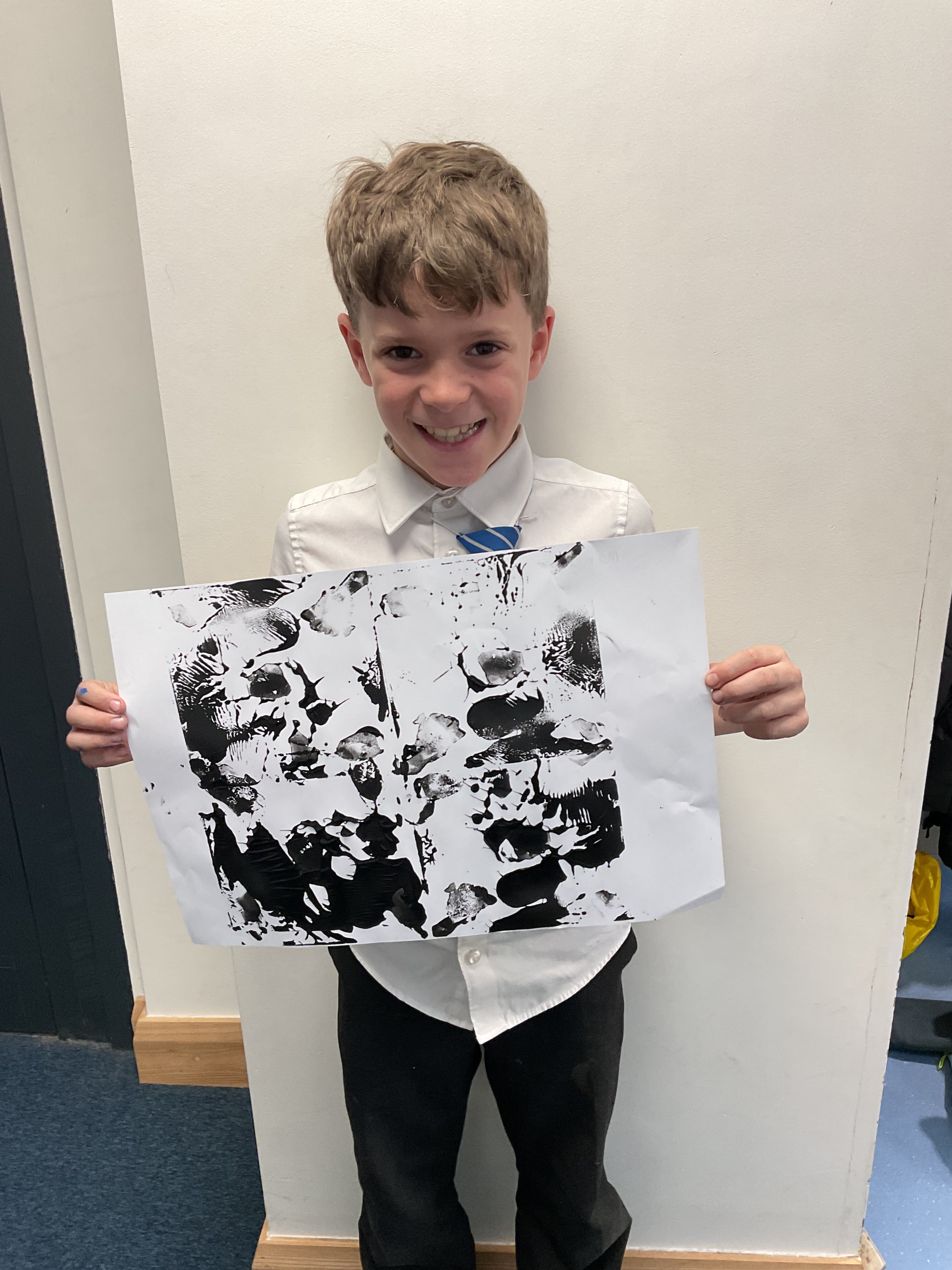 This week, we were delighted to welcome our special guest, Mr Mason (Alejandro and Sofia’s dad!). He visited our class to lead a fantastic printing workshop, sharing his specialist high school expertise with us. The children had a wonderful time exploring new skills and creating their own artwork. Thank you, Mr Mason! Here are our finished prints.