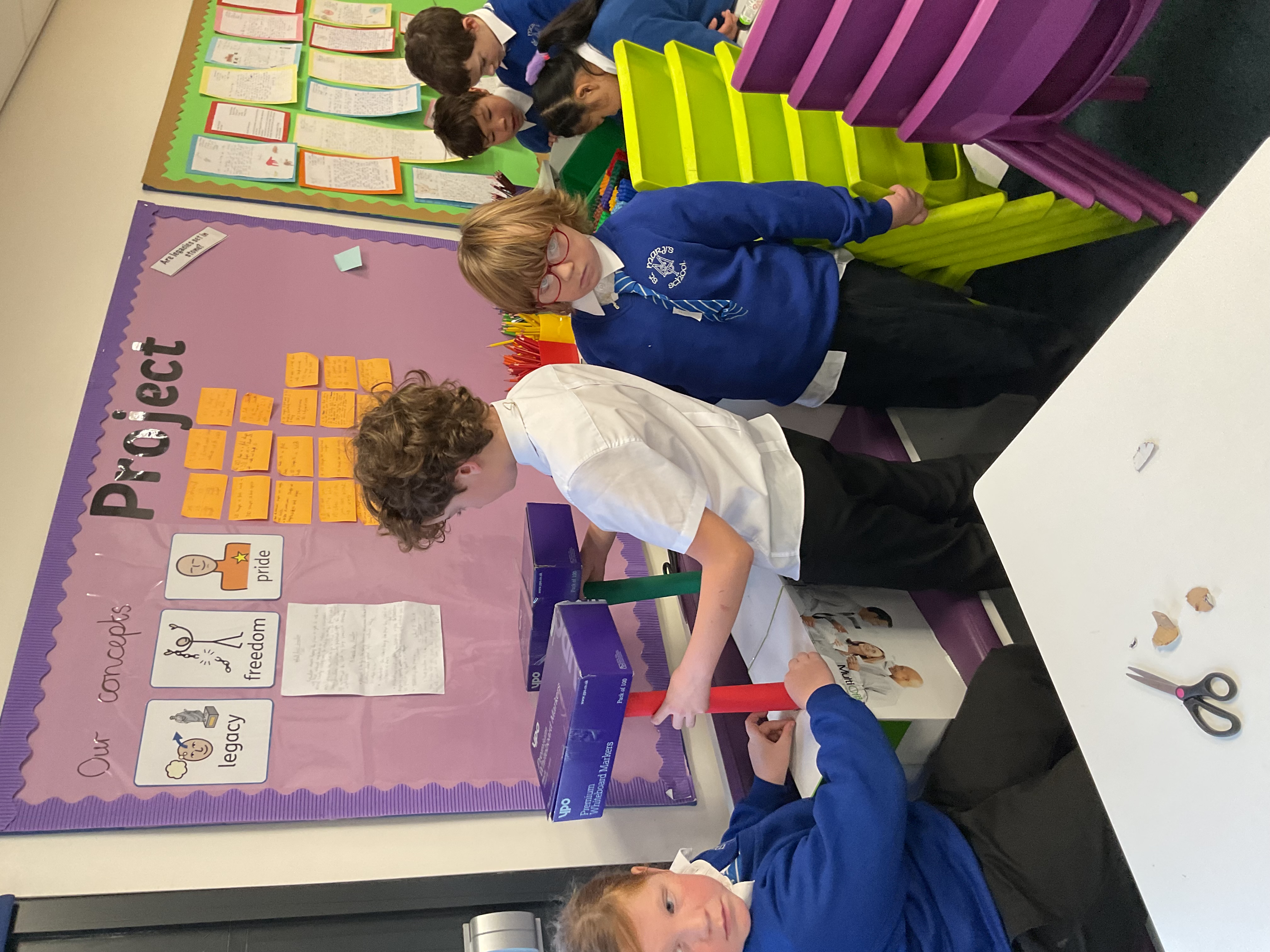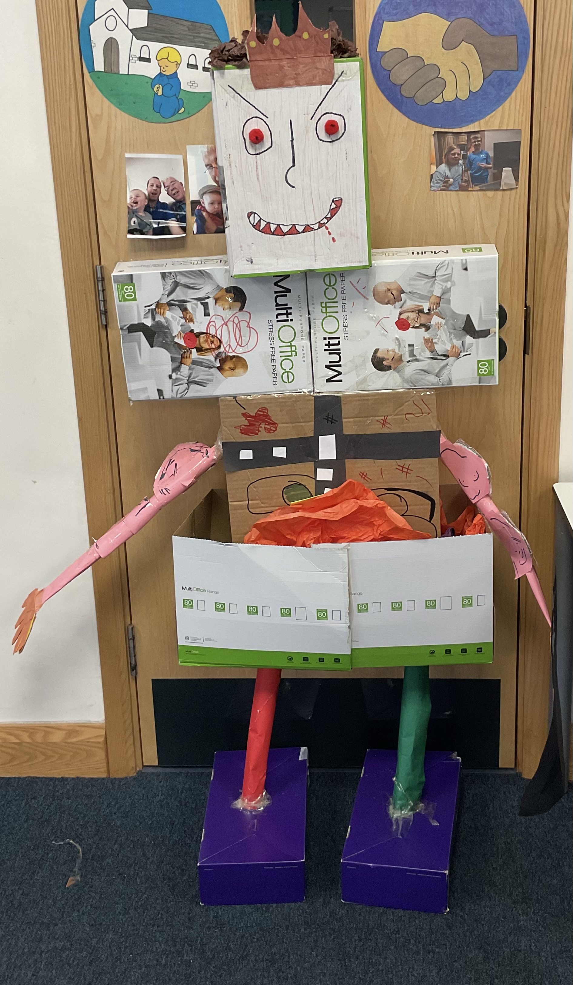 This term in RE, the children have been learning about the story of David. To finish our learning about David, we explored the story of David and Goliath. The children discussed their fears, and how God can help us overcome fear, as he did with David. The children worked collaboratively to make a class Goliath, attaching our fears to Goliath before catapulting them away!