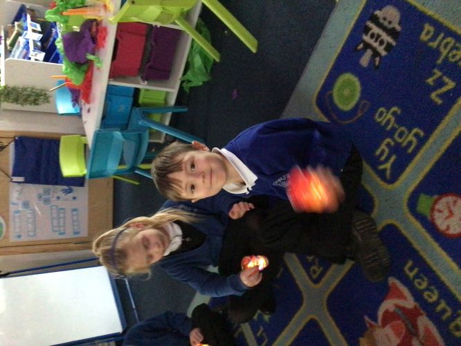 Today we explored how an object changes from transparent to translucent. We made a lantern using a plastic cup and tissue paper. The plastic cup was transparent because we could see through it clearly. When we added tissue paper, it became translucent, which means some light can still pass through, but we can’t see clearly anymore. Finally, we lit our lanterns with tea-lights and watched them glow!