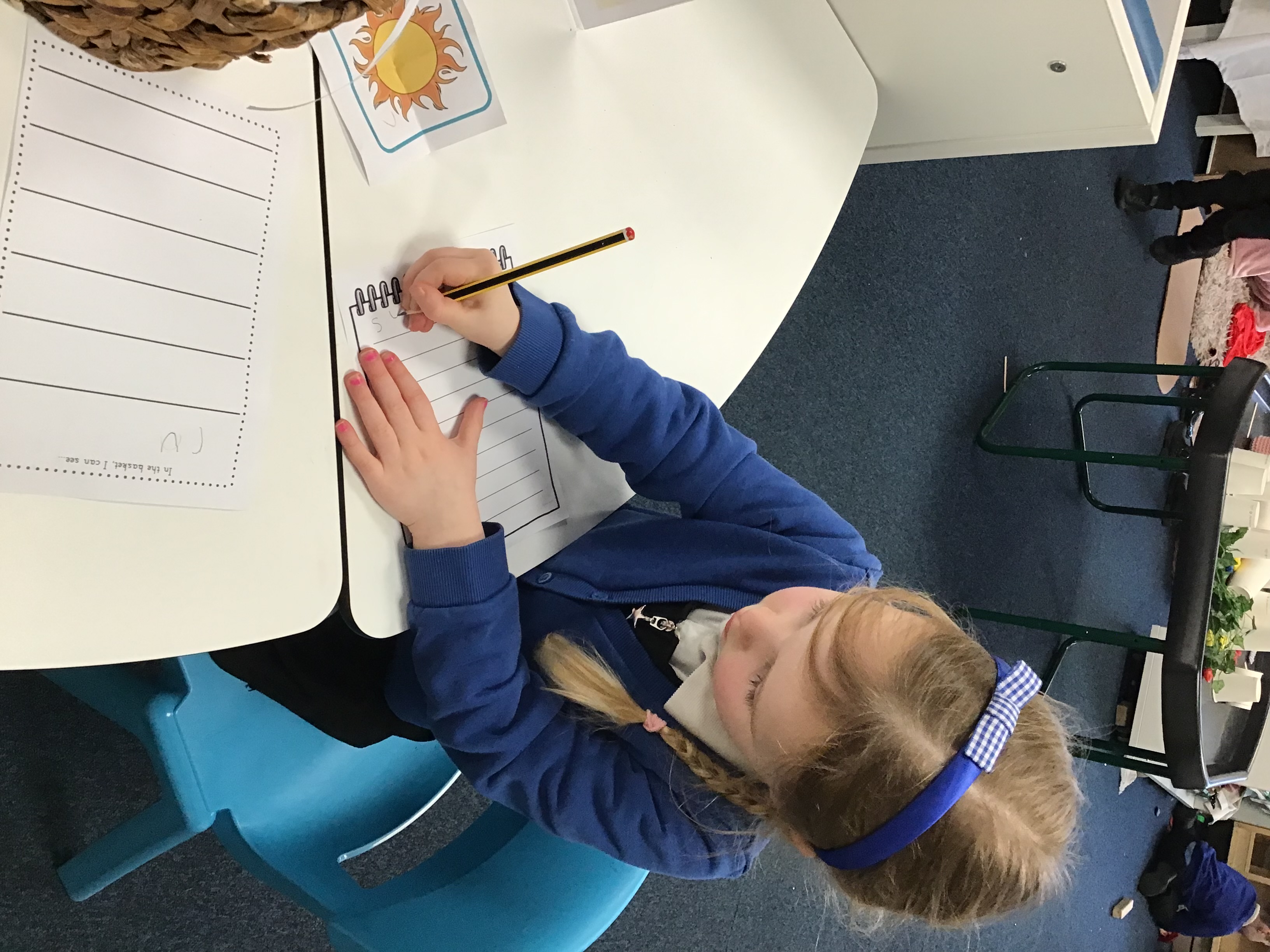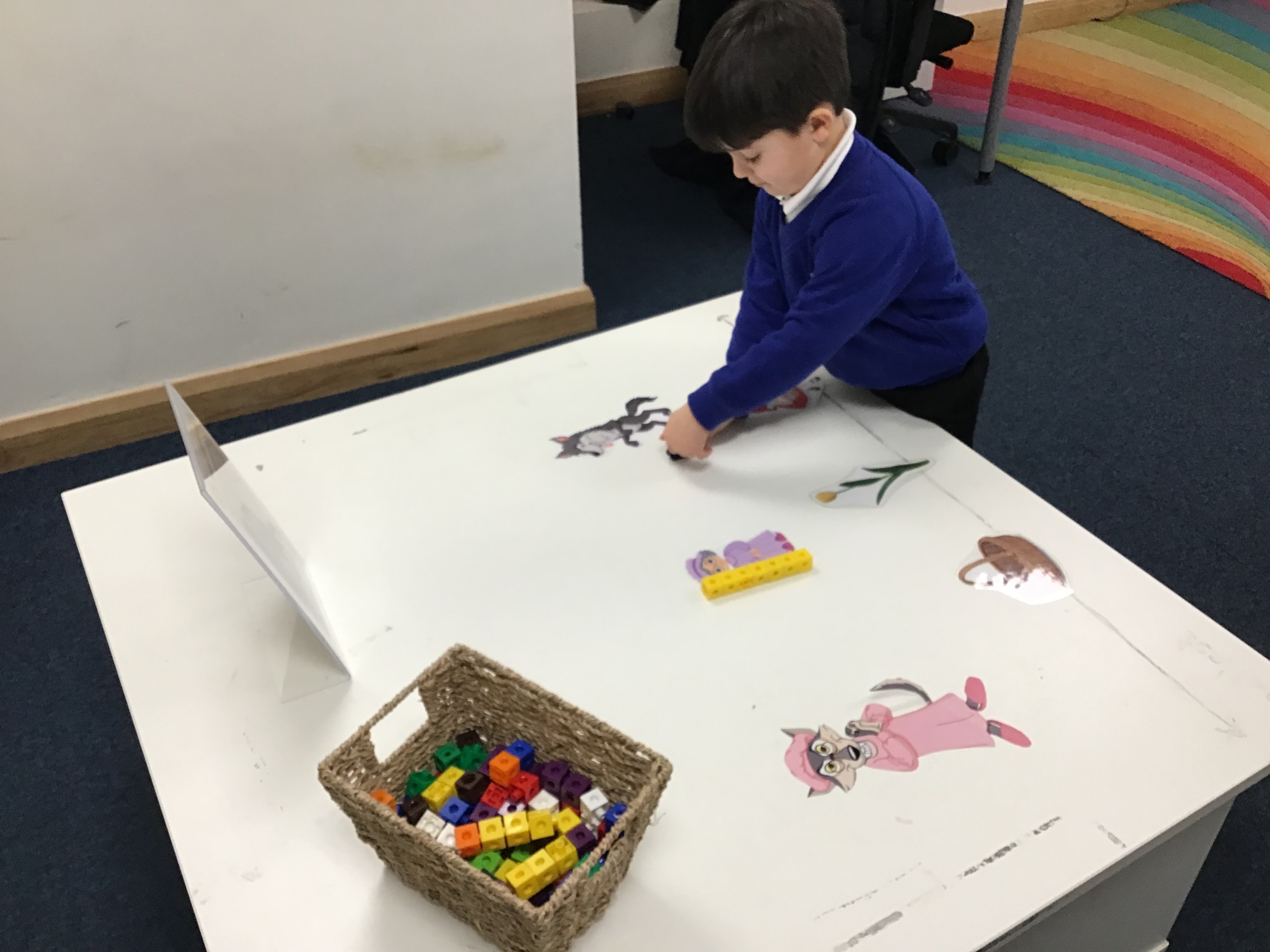 Our literacy challenge focused on CVC words. The children looked closely at items they might find in Little Red’s basket and used their phonics skills to sound out and write what they could see.