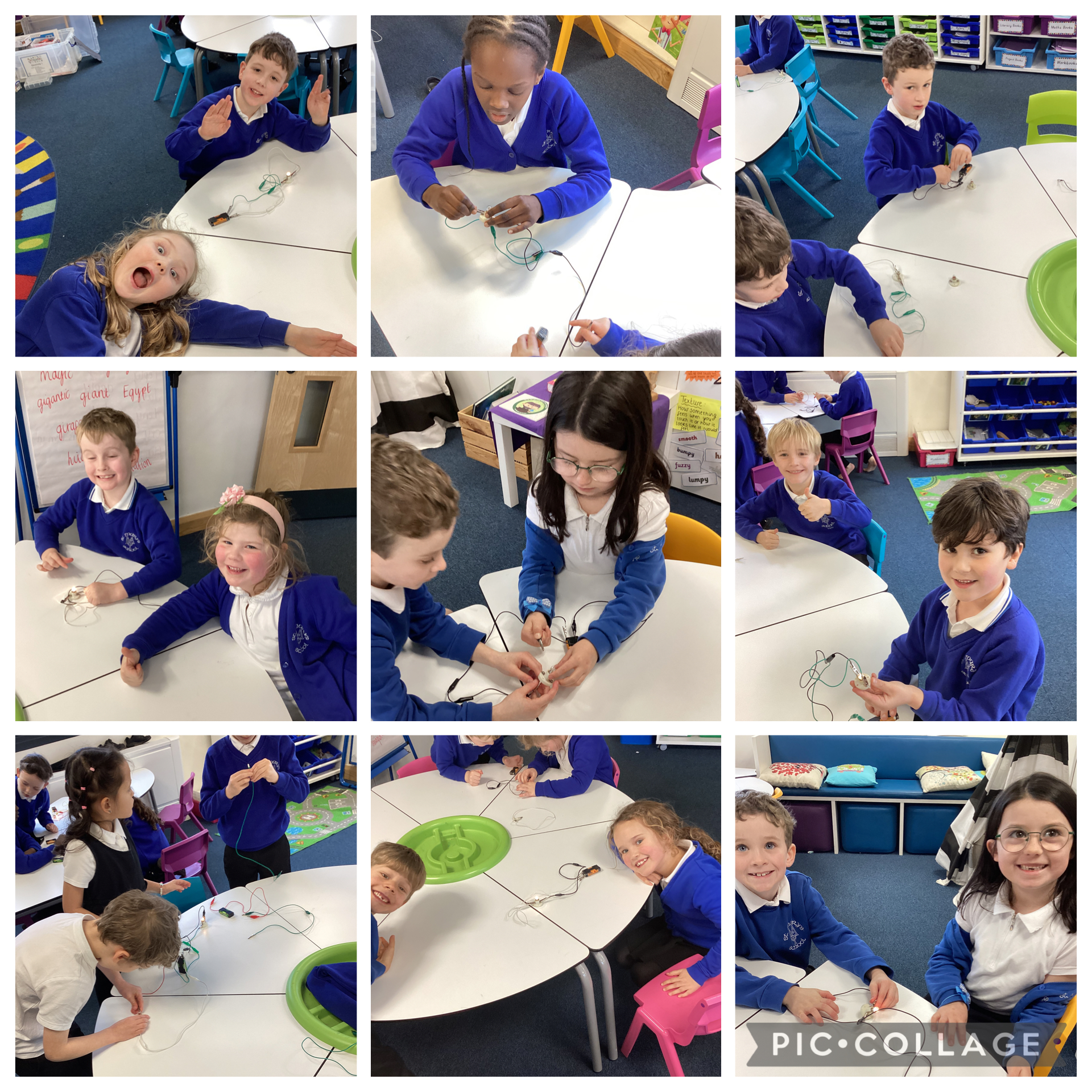 Today we used bulbs, wires and batteries to make our own electrical circuit. We joined all the pieces together to make a complete loop, and when everything was connected properly, the bulb lit up. It helped us learn how electricity travels and how circuits work. Take a look at our learning! We loved creating electrical circuits today!