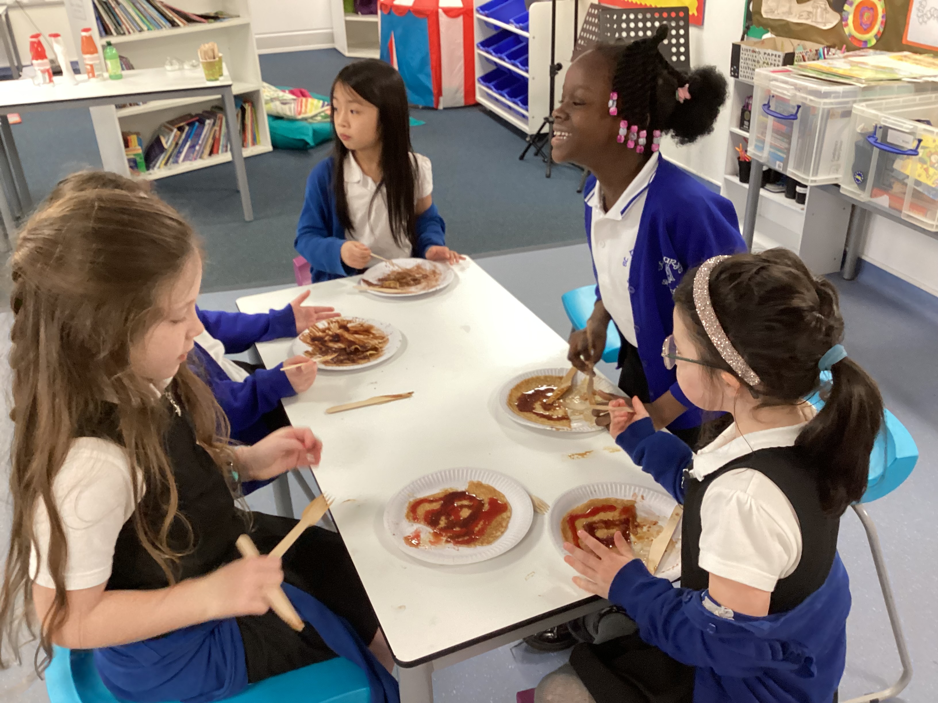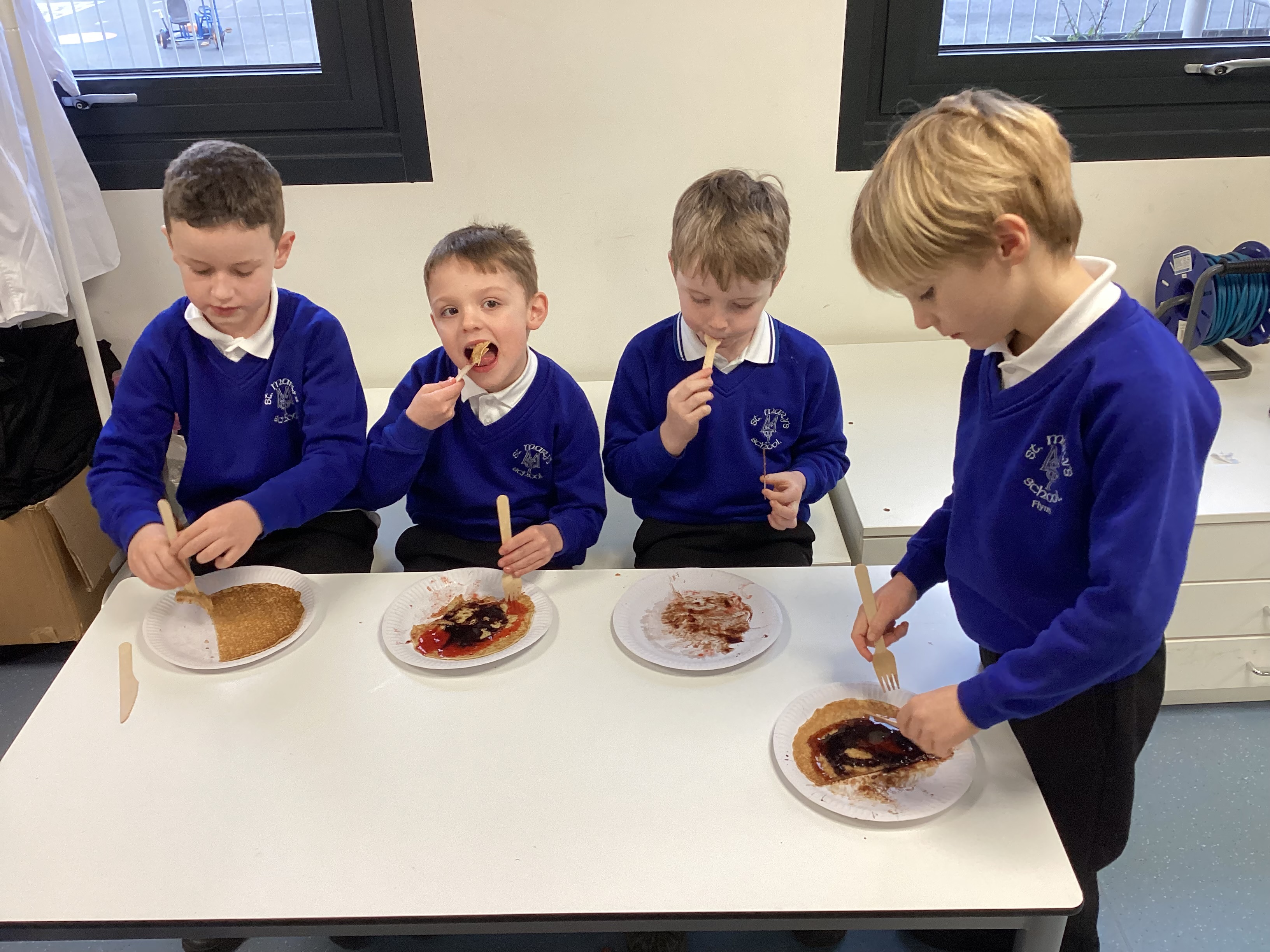 Year 2's have enjoyed some yummy pancakes this morning at the pancake cafe! A huge thank you to the Friends of St Marys for organising and providing us with delicious pancakes! Take a look at us enjoying our pancakes...