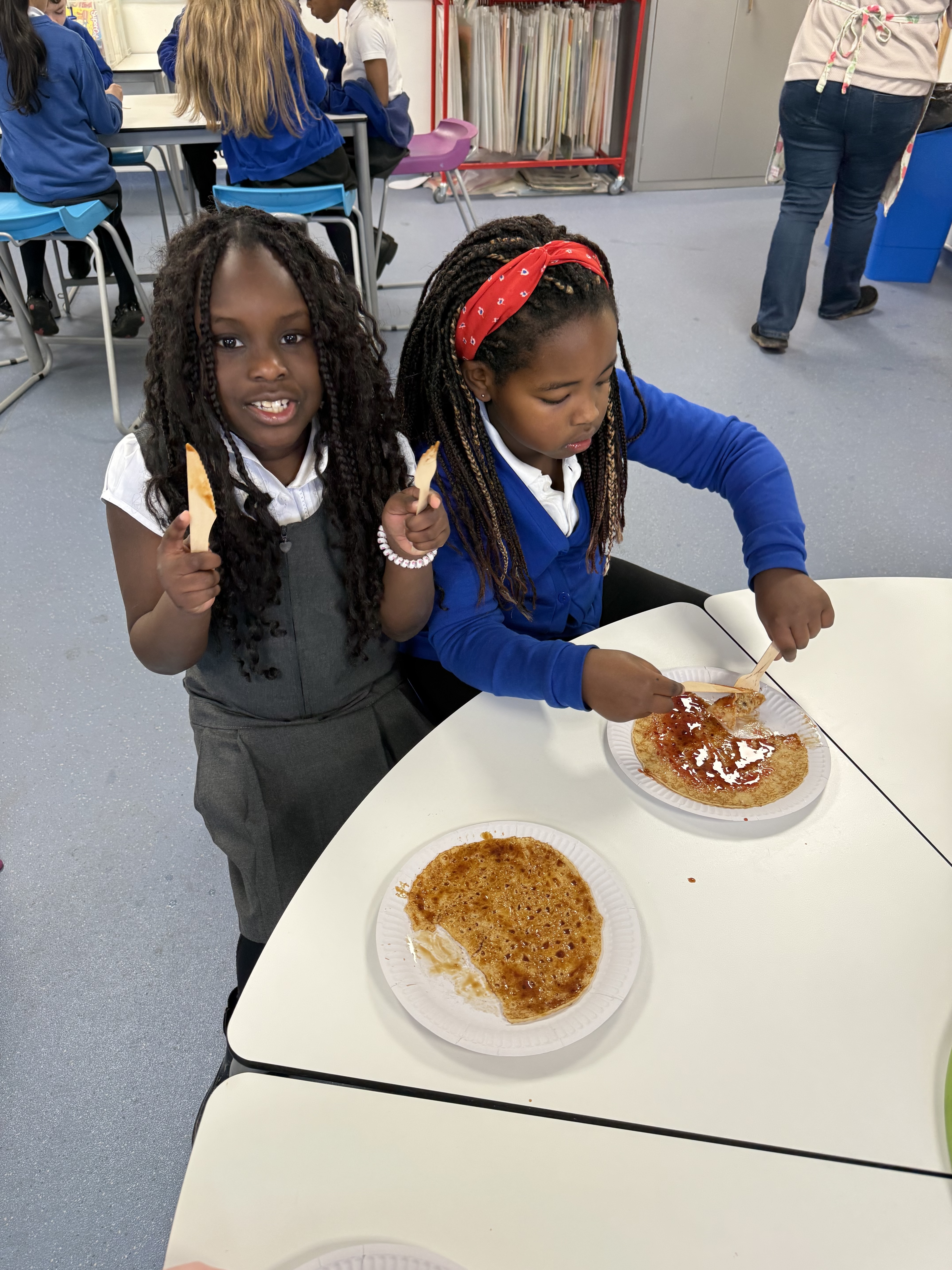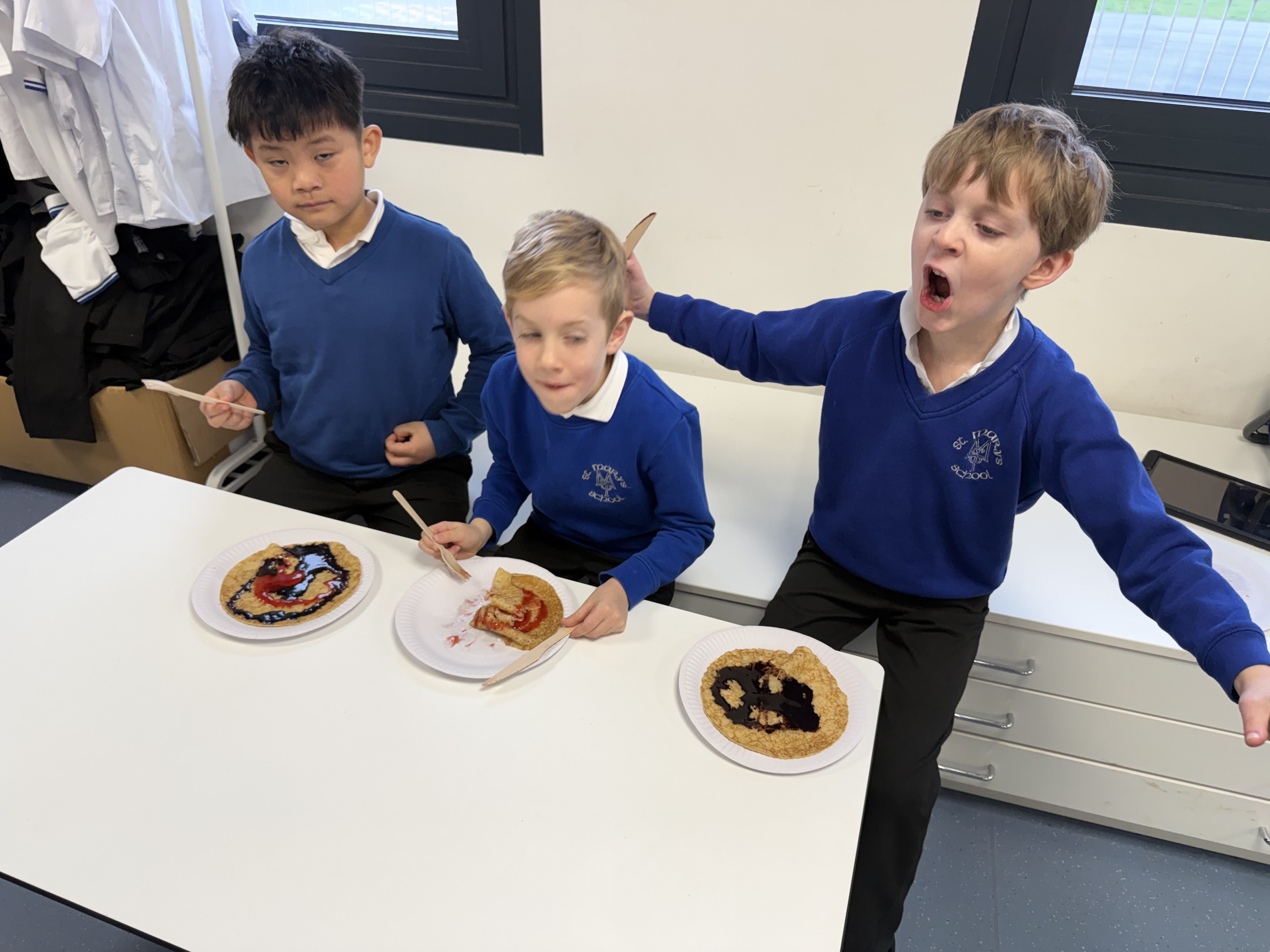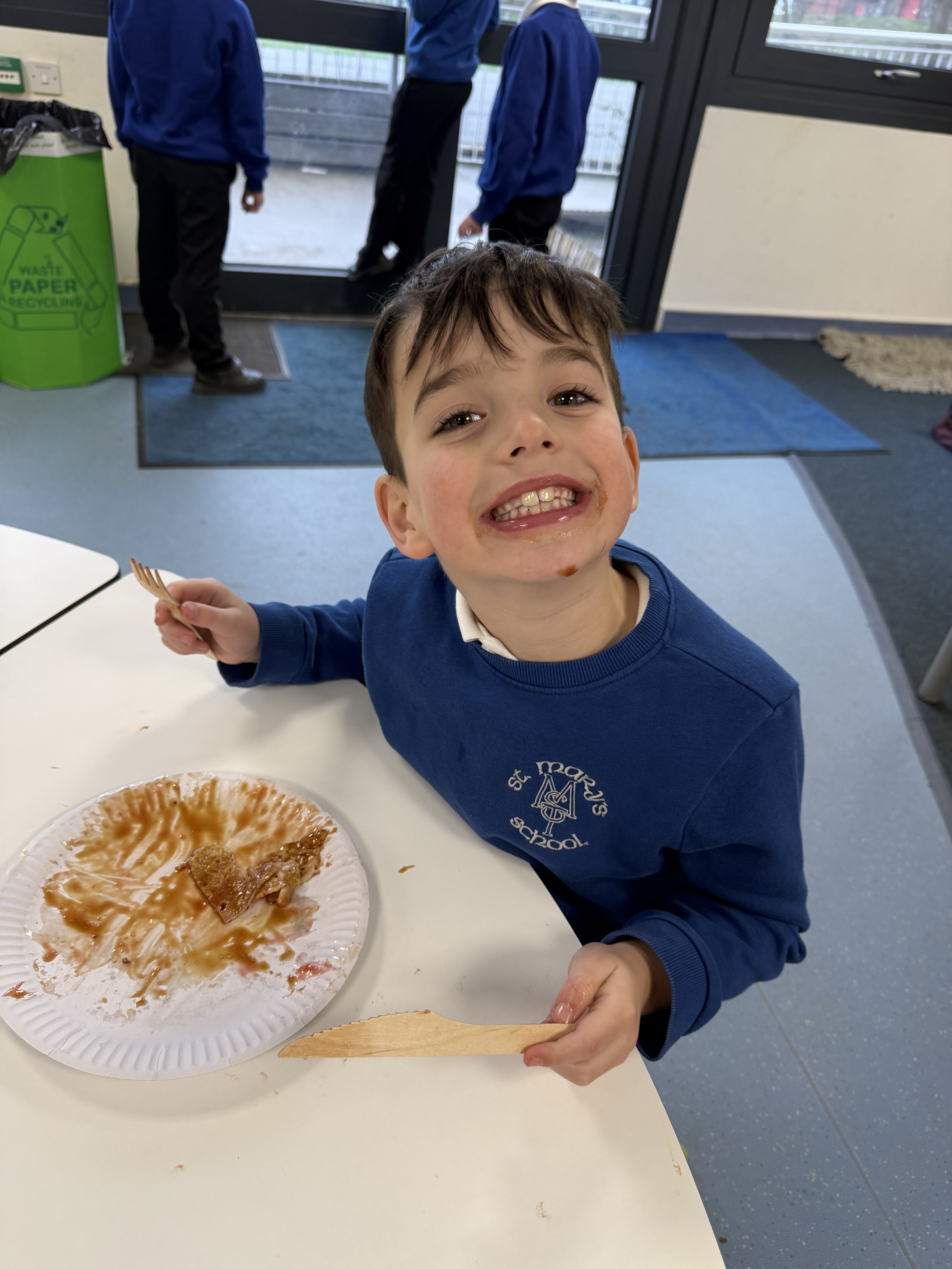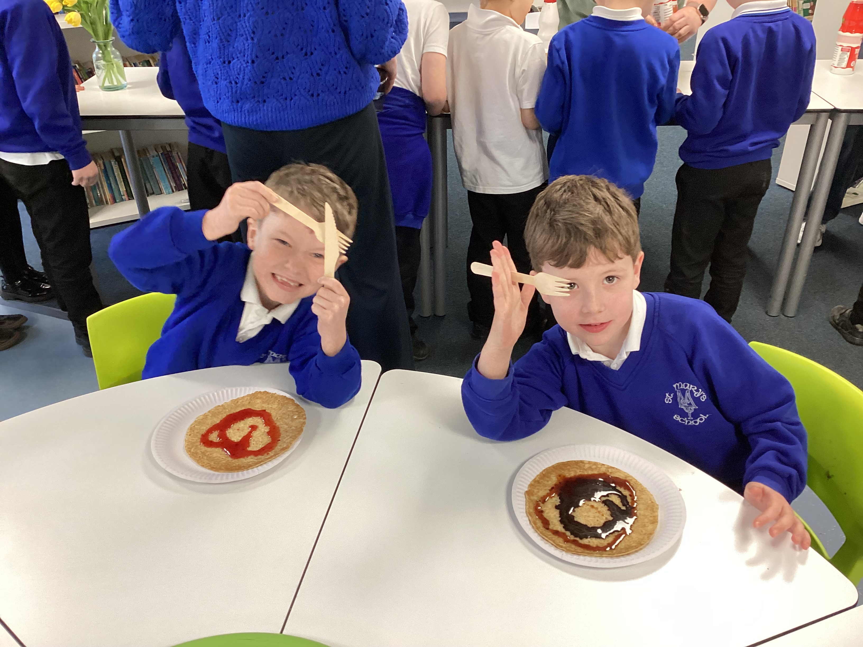 Year 2's have enjoyed some yummy pancakes this morning at the pancake cafe! A huge thank you to the Friends of St Marys for organising and providing us with delicious pancakes! Take a look at us enjoying our pancakes...