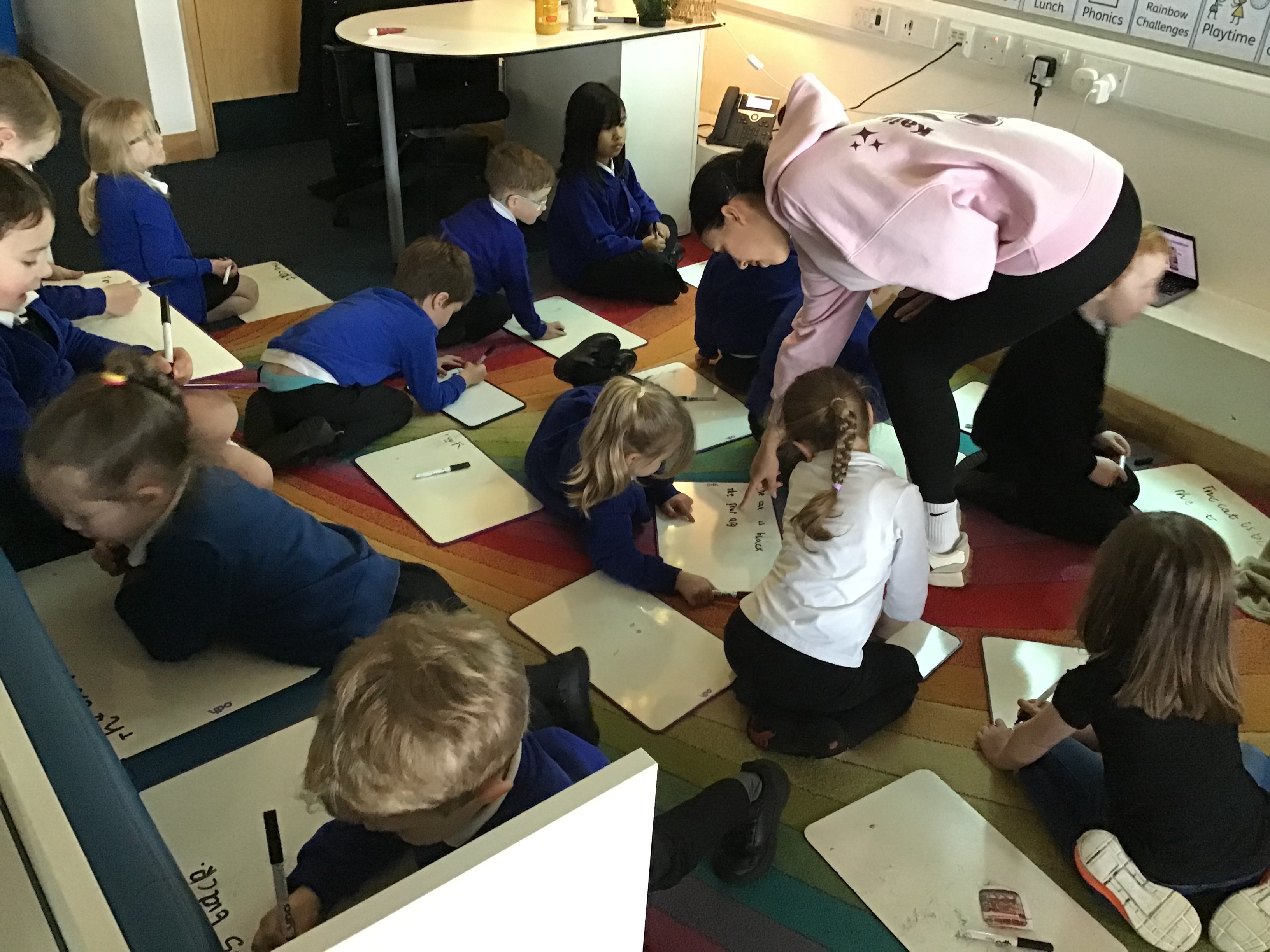Writing: At the writing table, we practised words with ee, ow, and oo, listening for the sounds and writing them independently.