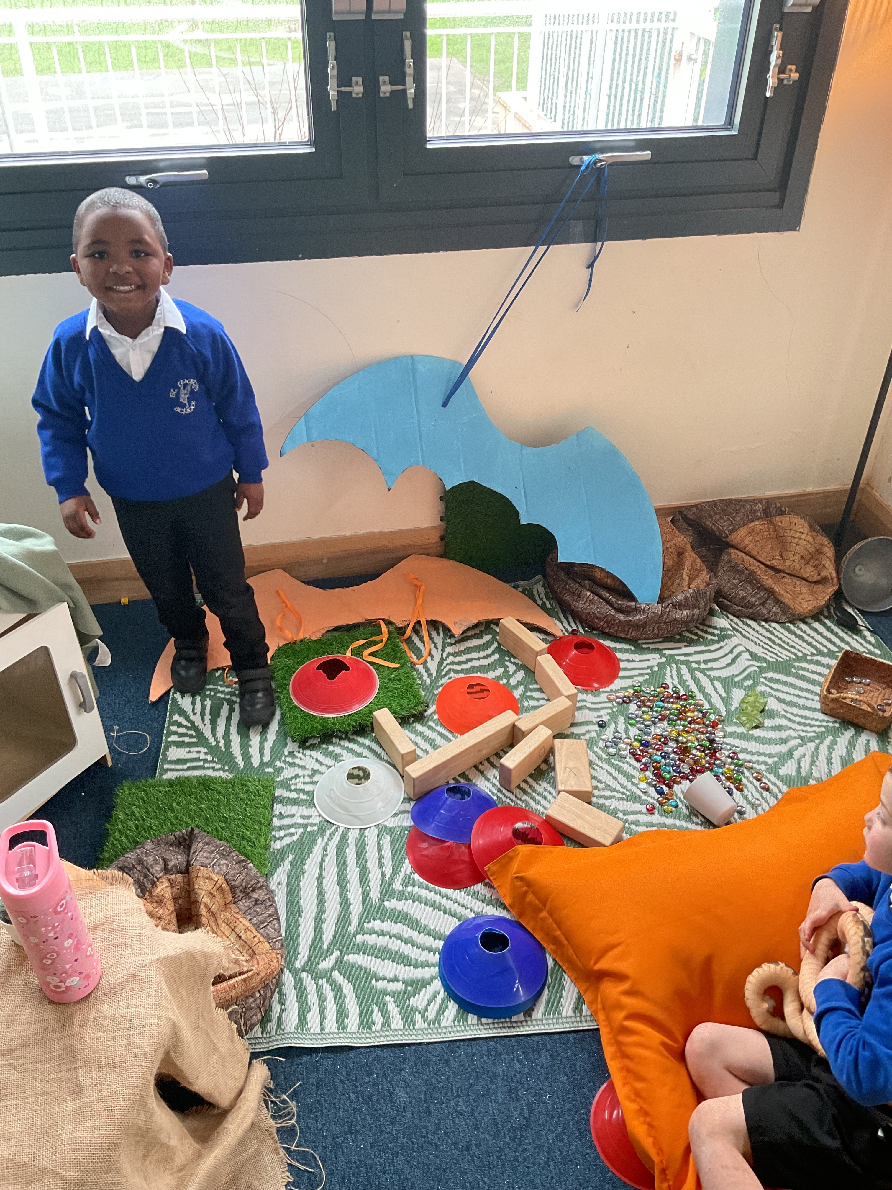 Construction: Using blocks and loose parts, the children designed and built an obstacle course for Zog to practise his dragon skills.